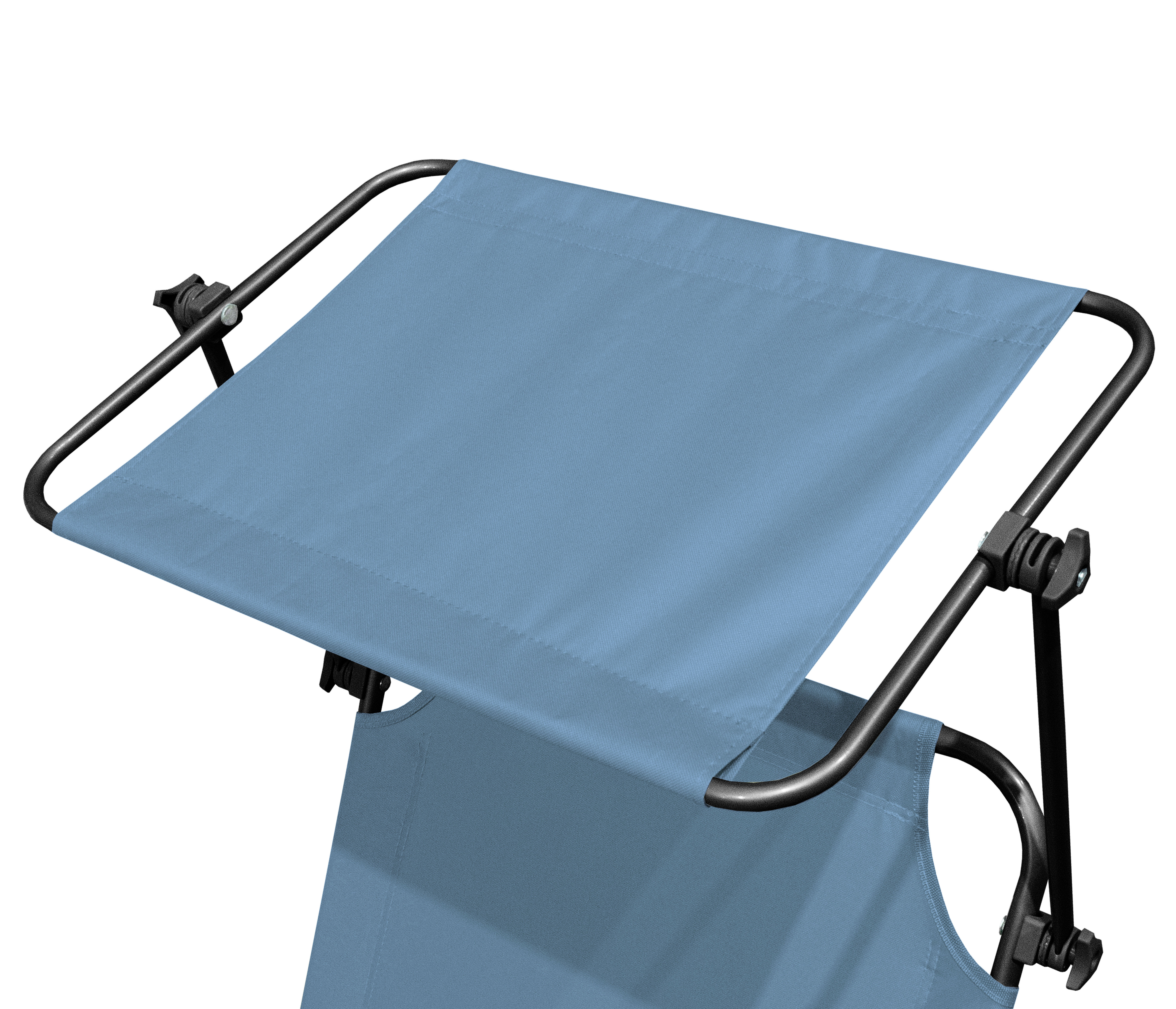 Součástí lehátka je odnímatelná stříška, která se dá libovolně nastavit a ochrání obličej před ostrým sluníčkem. Opěrku zad na lehátku lze nastavit do 4 různých poloh.