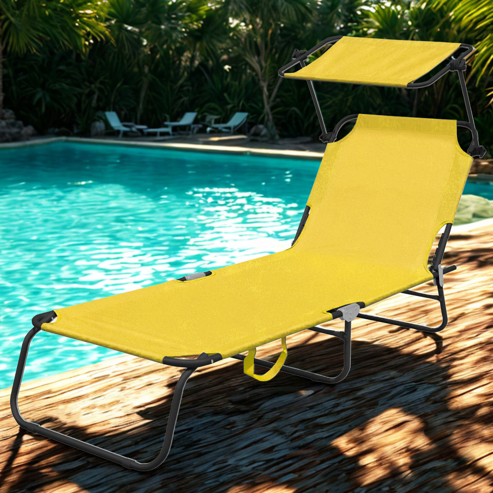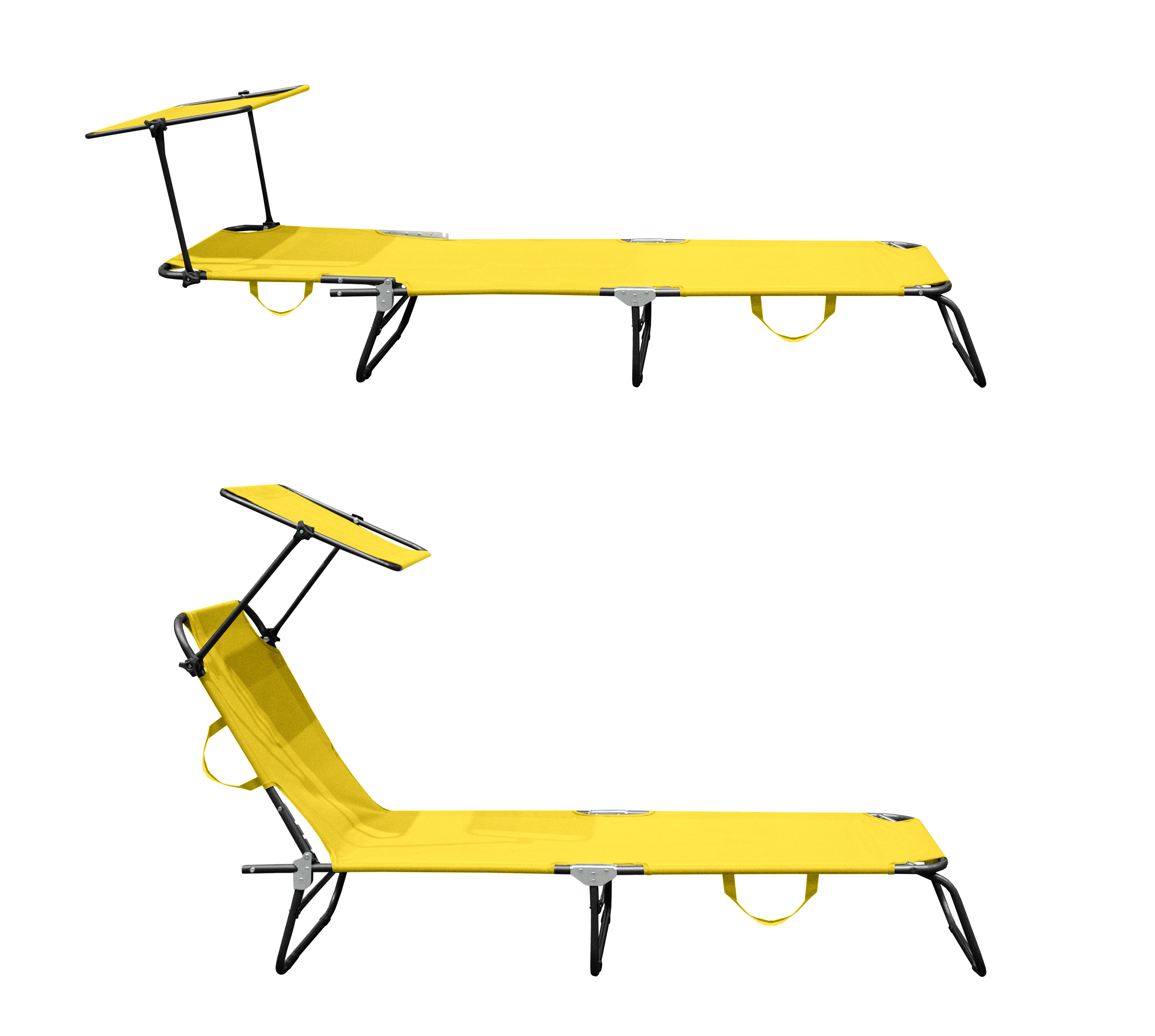 Skládací zahradní lehátko se zpevněnou ocelovou konstrukcí, v moderním designu, vhodné pro zahrady, na kempování či pláže.