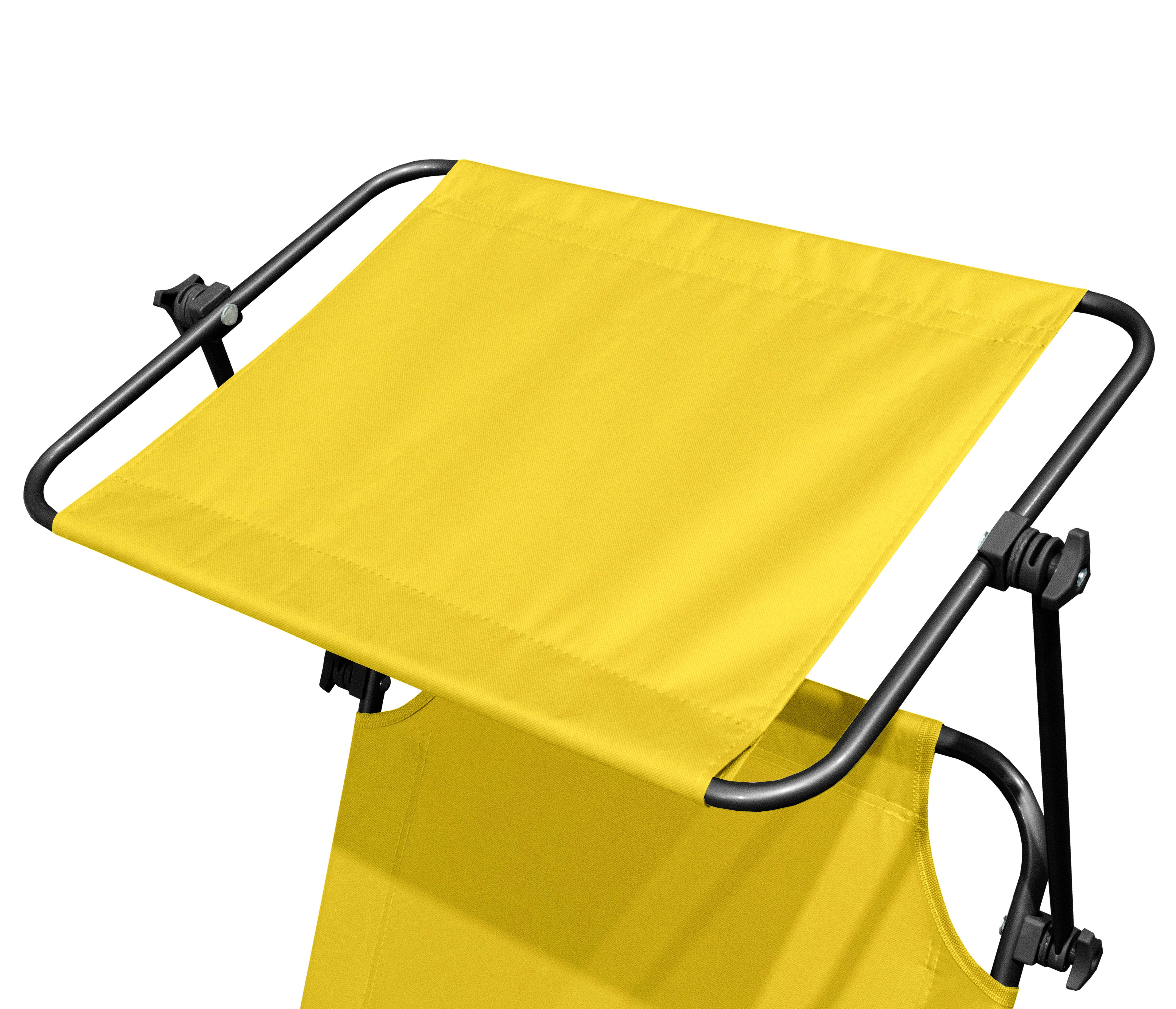 Součástí lehátka je odnímatelná stříška, která se dá libovolně nastavit a ochrání obličej před ostrým sluníčkem. Opěrku zad na lehátku lze nastavit do 4 různých poloh.