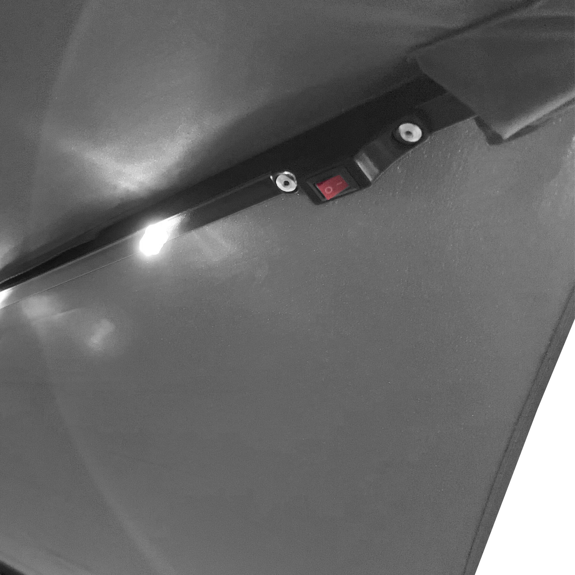 Slunečník má 24 LED diod podél žeber, které jsou napájeny ze solárního panelu umístěného na deštníku. LED osvětlení navodí na vaší zahradě při večerním posezení příjemnou atmosféru.