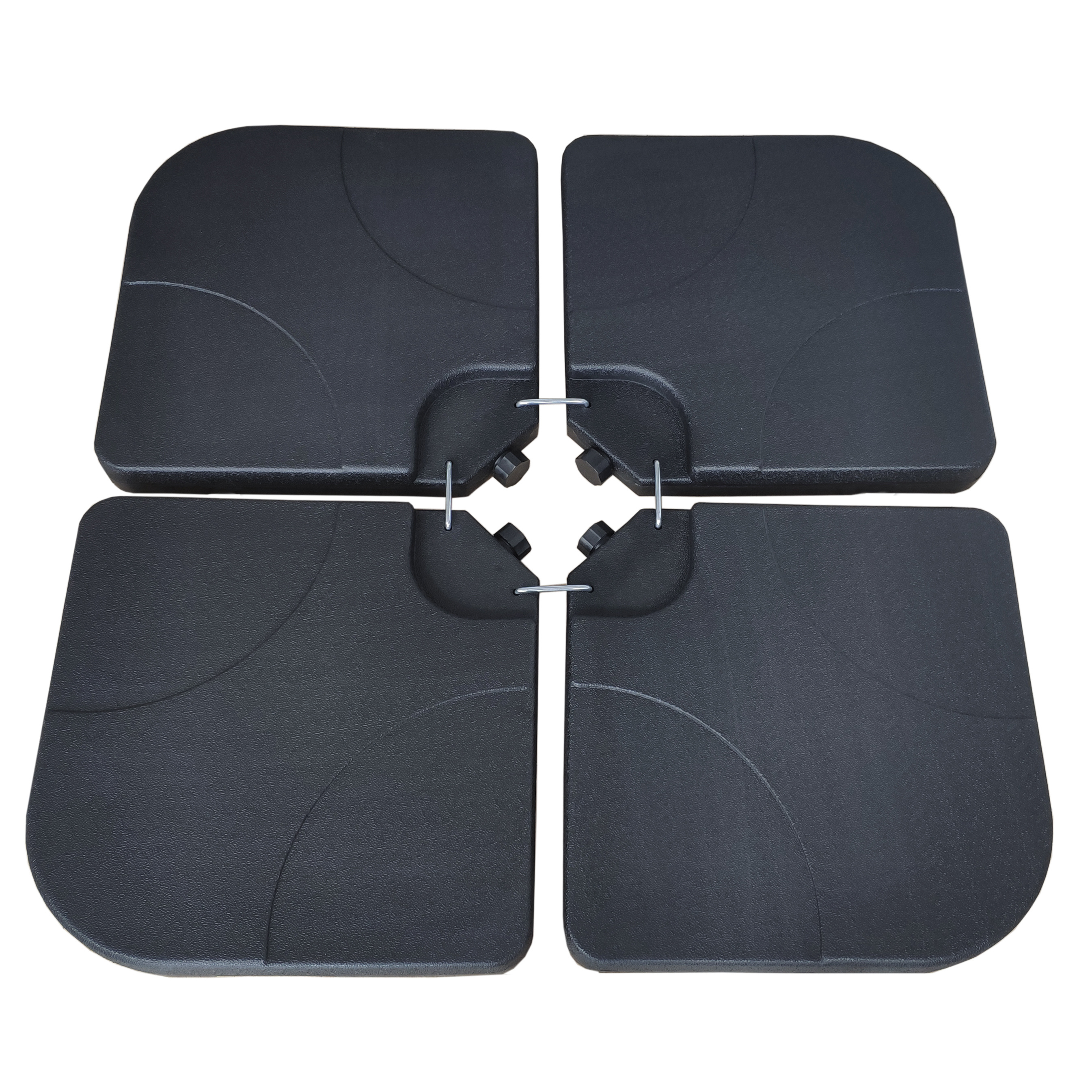 Aga závažím pro slunečník. Tento praktický a spolehlivý set čtyř závaží je navržen tak, aby poskytoval maximální stabilitu vašemu slunečníku, ať už ho používáte na zahradě, terase nebo u bazénu.