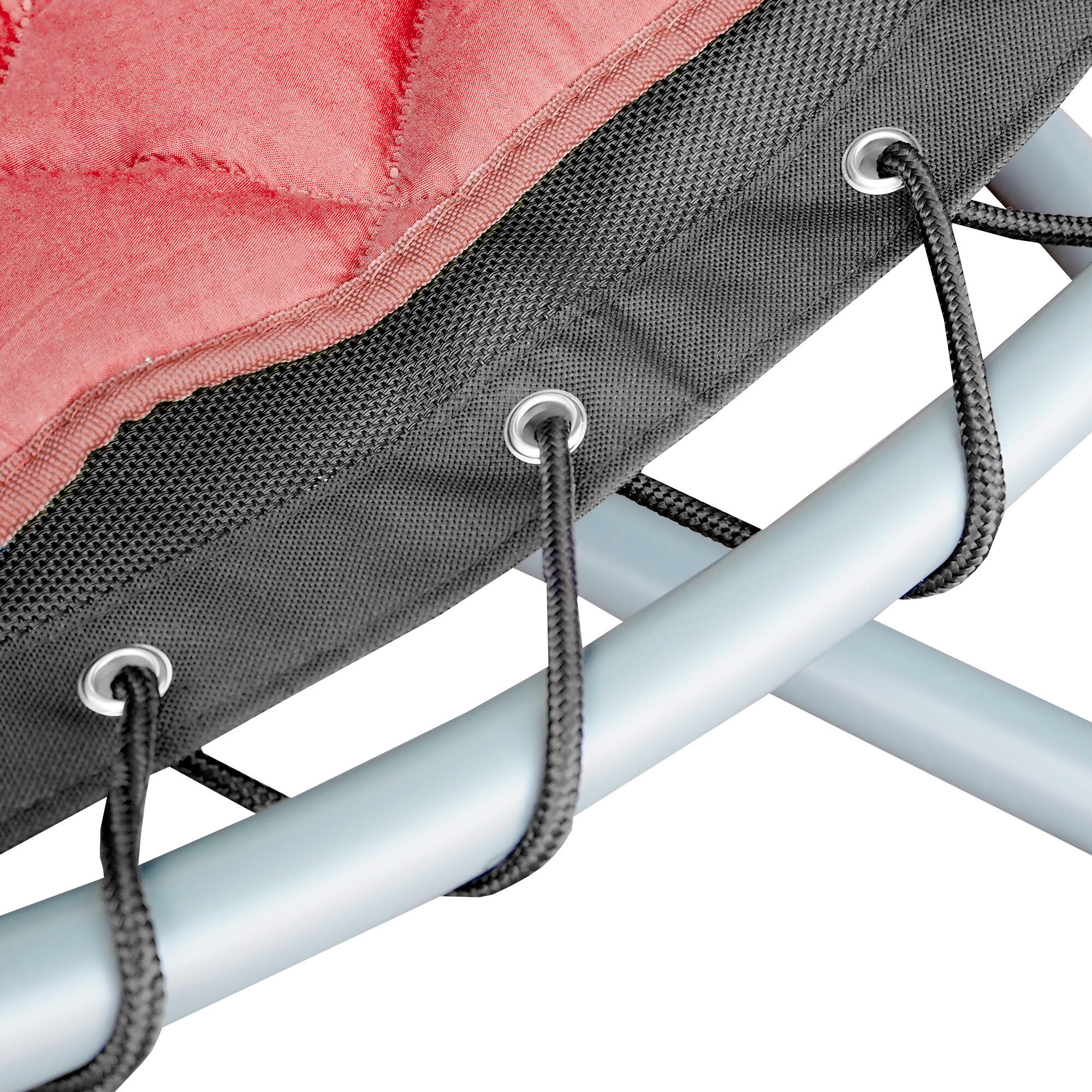 Křeslo je vyrobeno z vysoce kvalitních materiálů, které zaručují dlouhou životnost a odolnost. Sedák je vyroben z textilenu, což je materiál známý svou pevností a odolností vůči povětrnostním vlivům.