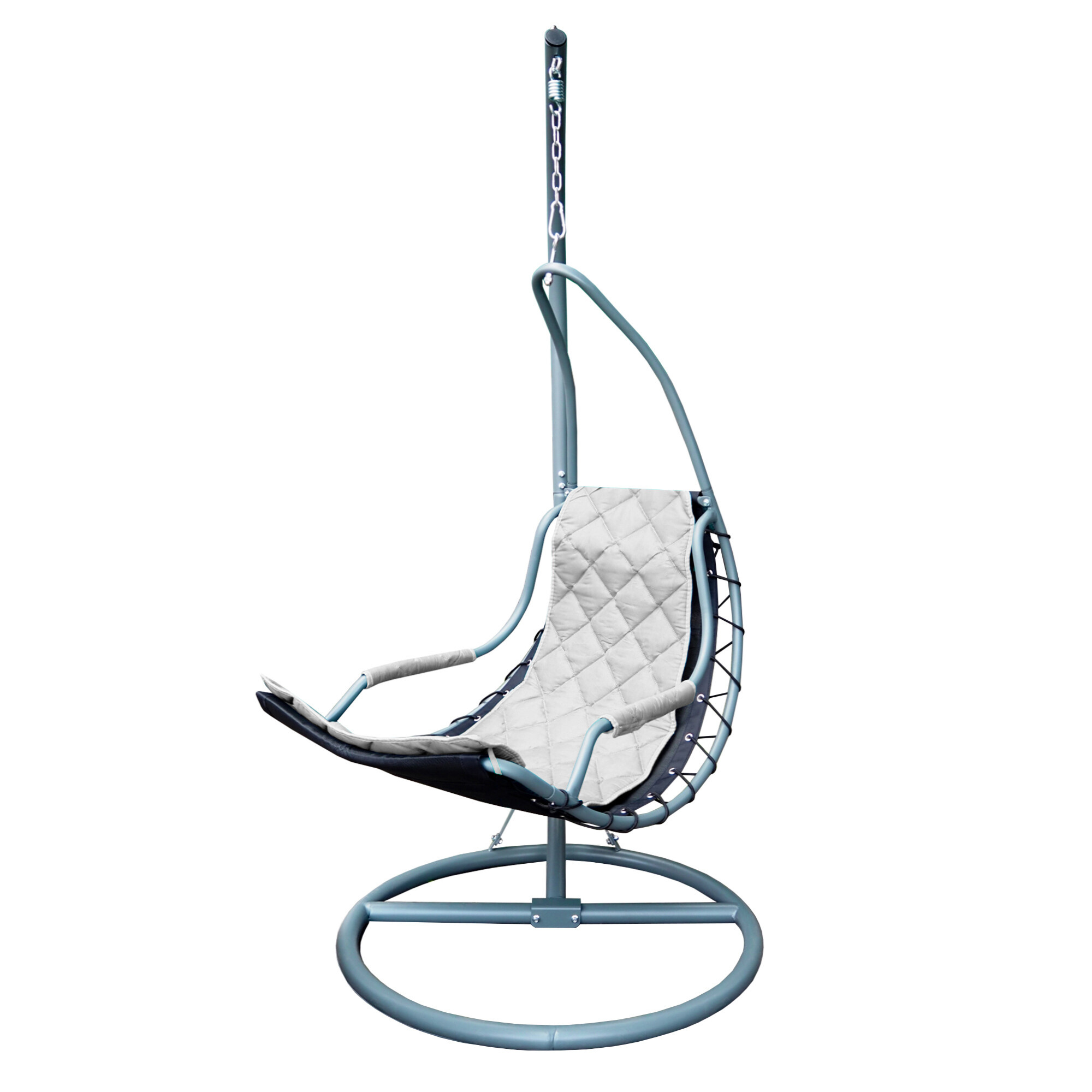 Závěsné křeslo je navrženo s ohledem na moderní estetiku a maximální pohodlí. Jeho šedá barva se snadno hodí do jakéhokoli interiéru nebo exteriéru, ať už ho umístíte na terasu, balkon, do obývacího pokoje nebo na zahradu.