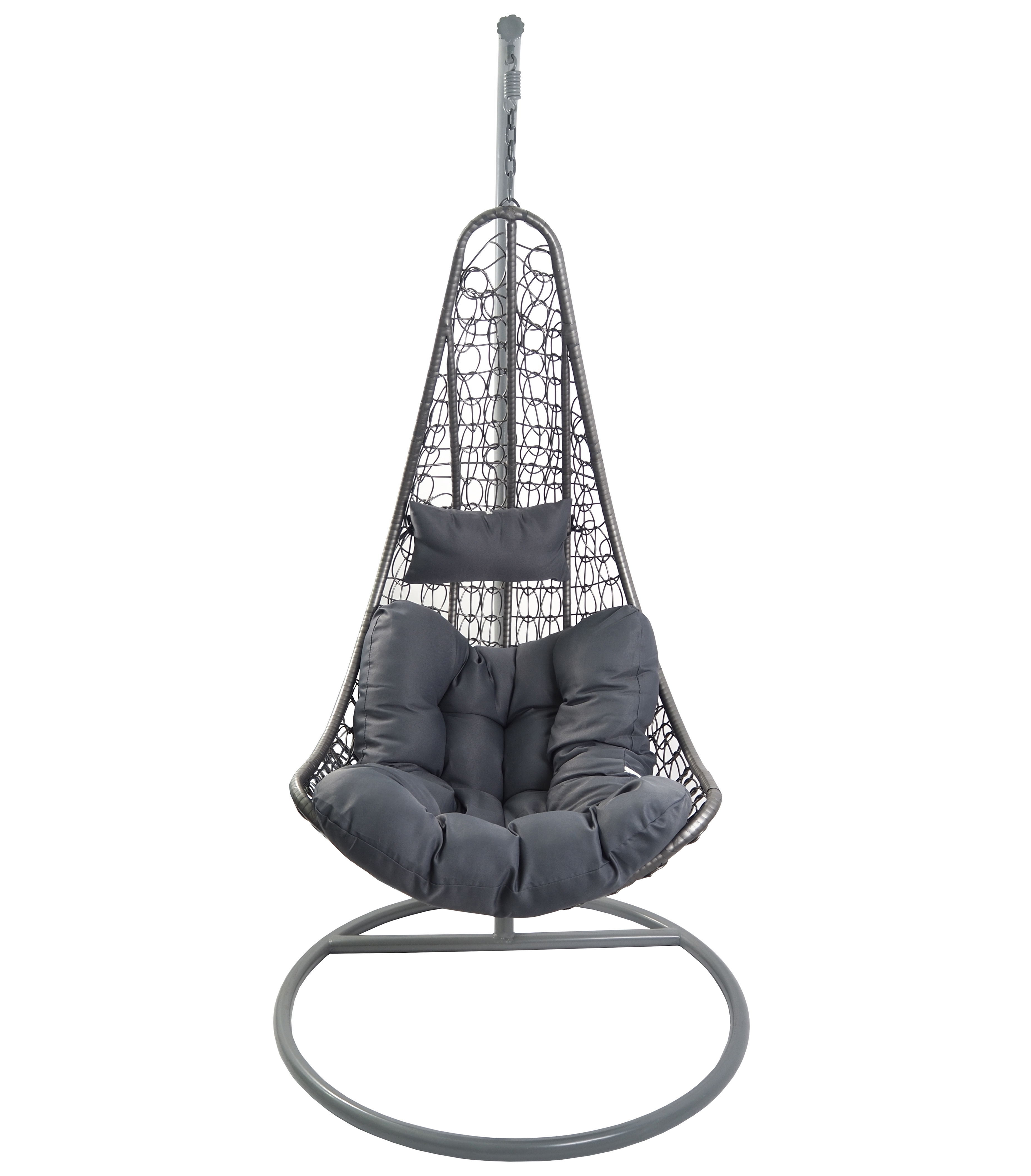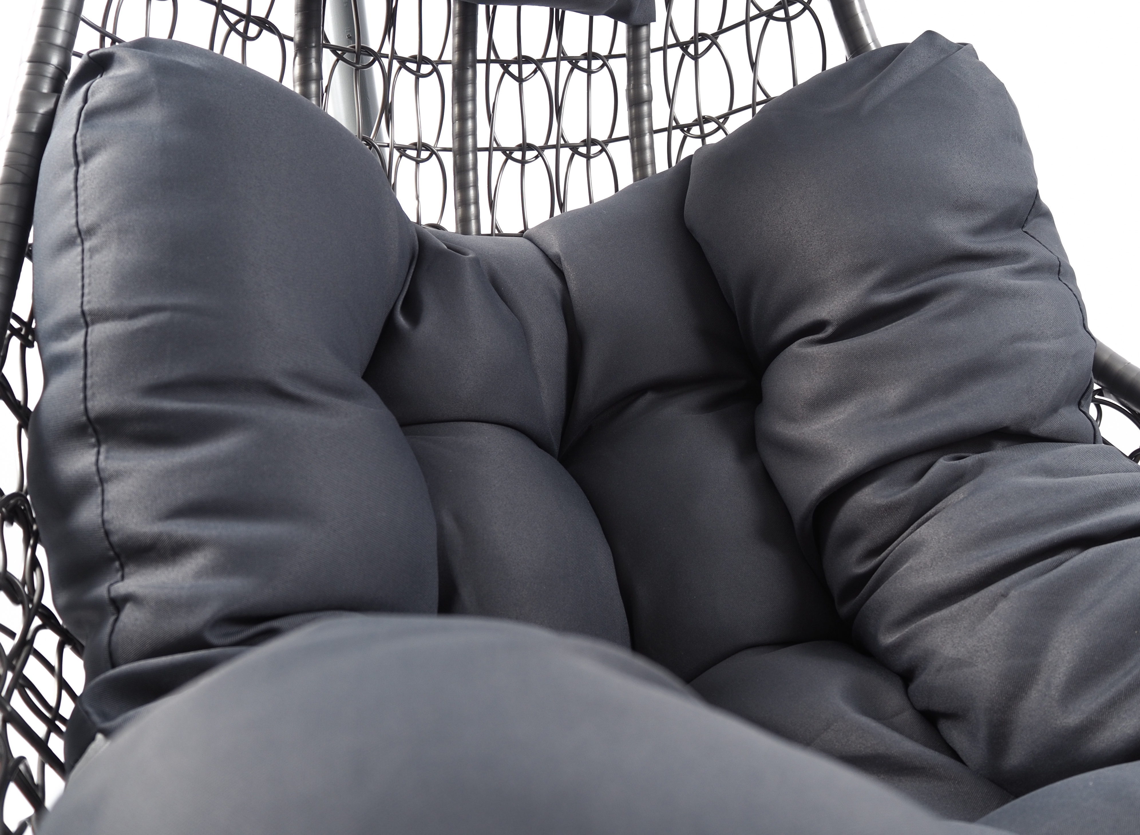 Závěsné křeslo se stabilní kovovou konstrukcí sedacím prostorem ozdobně vypleteným z umělého ratanu. Součástí závěsného křesla jsou i pohodlné polštáře, které jsou voděodolné.