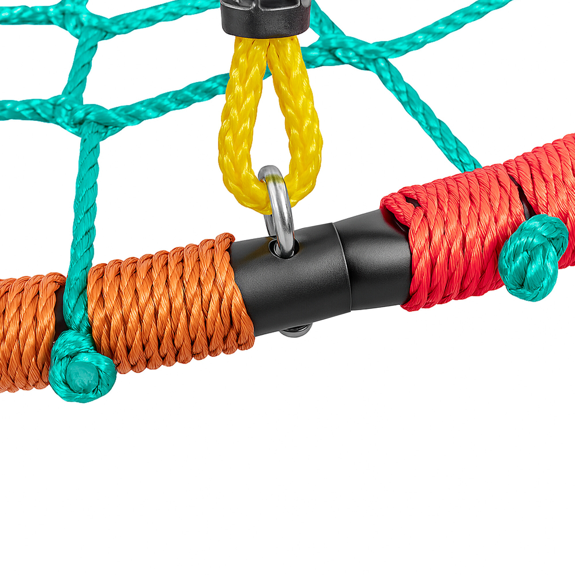 Nastavitelné provazy disponují kroužkem pro pevné zavěšení houpačky. Houpací kruh můžete namontovat dvěma způsoby.