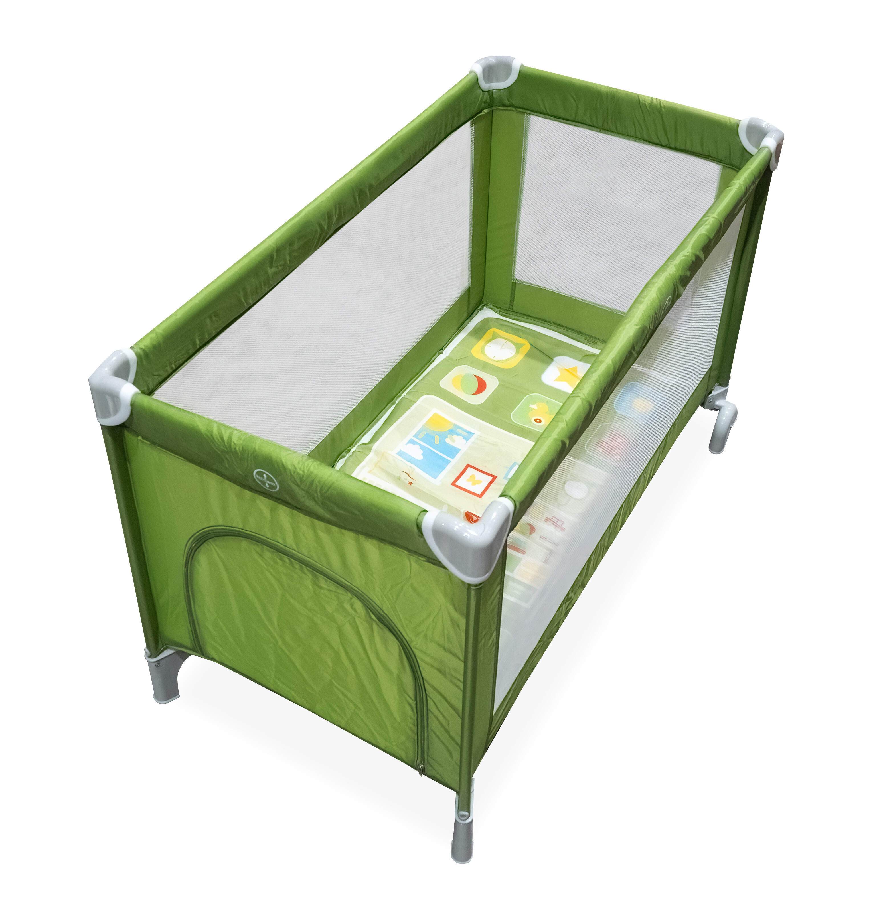 Díky síťovým bočnicím v postýlce cirkuluje čerstvý vzduch a s dítětem na sebe stále vidíte. Postýlka disponuje skládací matrací a cestovní taškou pro pohodlné přenášení.