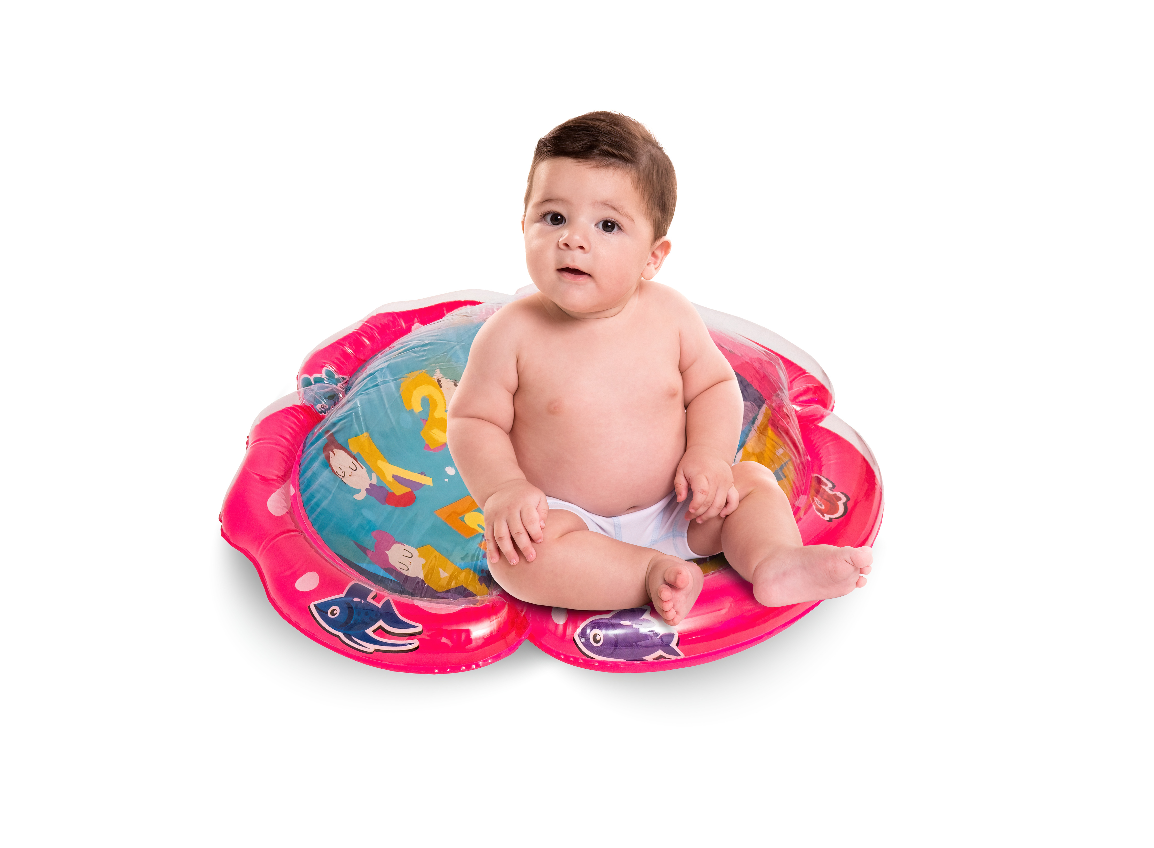 Stačí nafoukat okraj podložky a střed naplnit vodou popřípadě je možnost ji nafouknout. Díky vodě uvnitř se začnou pohybovat prvky ve tvaru mořských živočichů, které dítě povzbuzují ke hře.