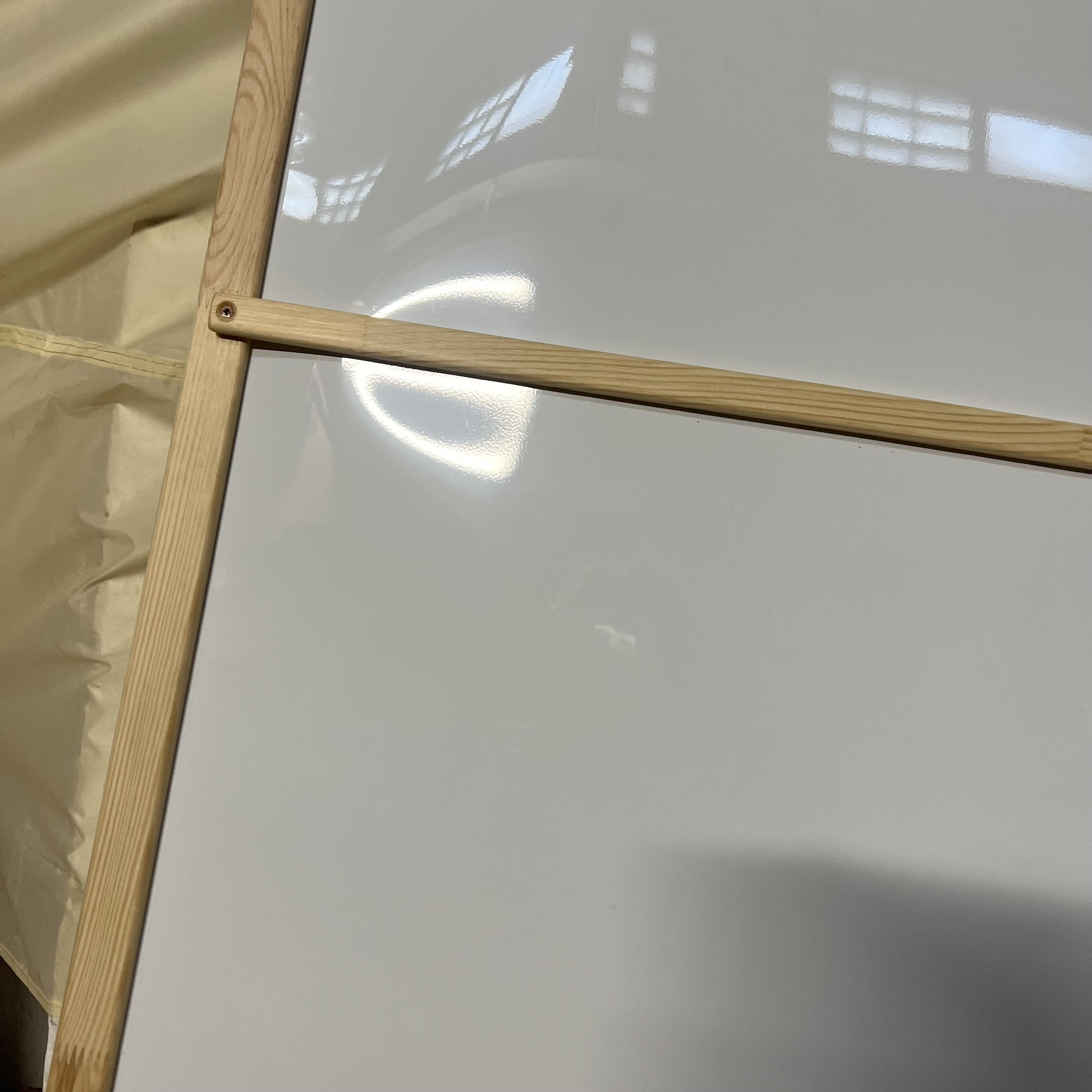 Tabule je mírně poškozená. Bílá část tabule je v místě prohnutá a v jednom rohu nelze spojit (krátká laťka).
