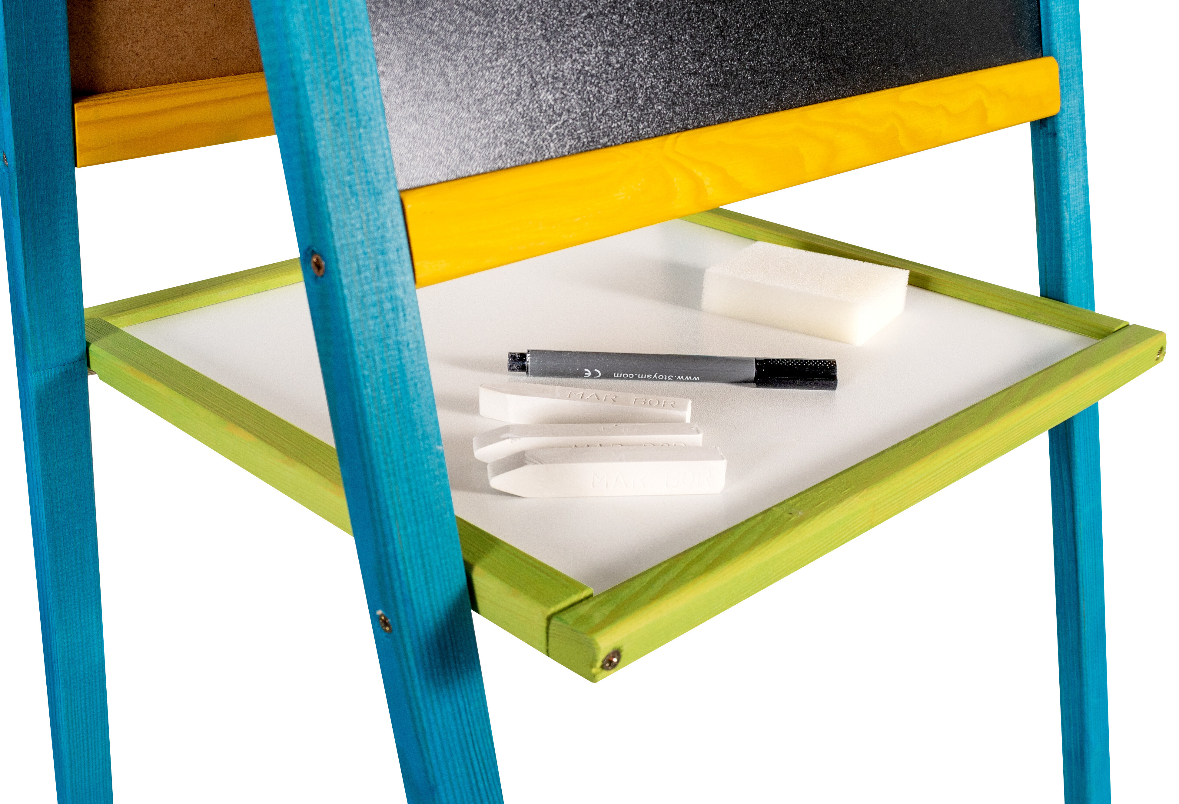 Oboustranná dětská tabule s odkládací poličkou, počítadlem a hodinami, od firmy Aga4Kids.