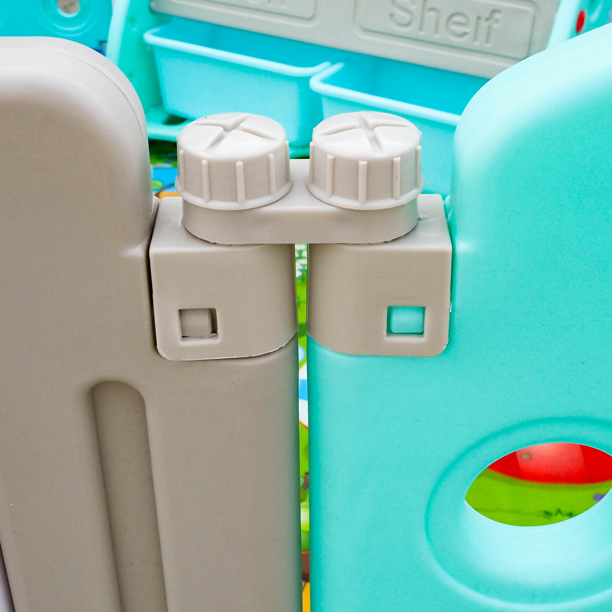 Ohrádka je navržena tak, aby její sestavení bylo snadné a intuitivní, bez potřeby nářadí. Plastový materiál je také snadno umývatelný, což zajišťuje hygienu a dlouhodobou udržitelnost.