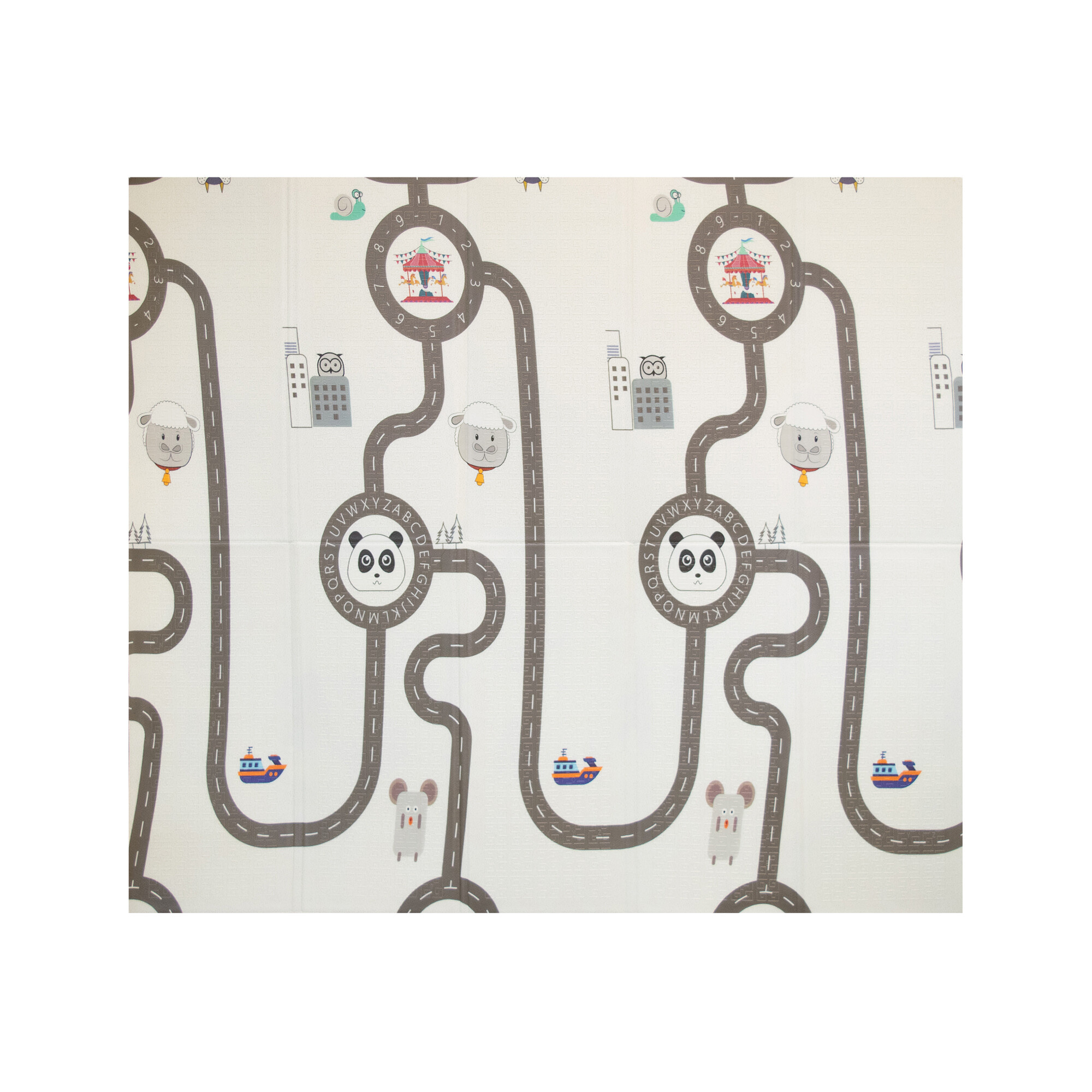Protiskluzový povrch pomáhá udržet podložku stabilně na místě i při aktivnější hře, zatímco oboustranný potisk s dětskými motivy podporuje zrakové vnímání, orientaci a přirozenou zvídavost dítěte.