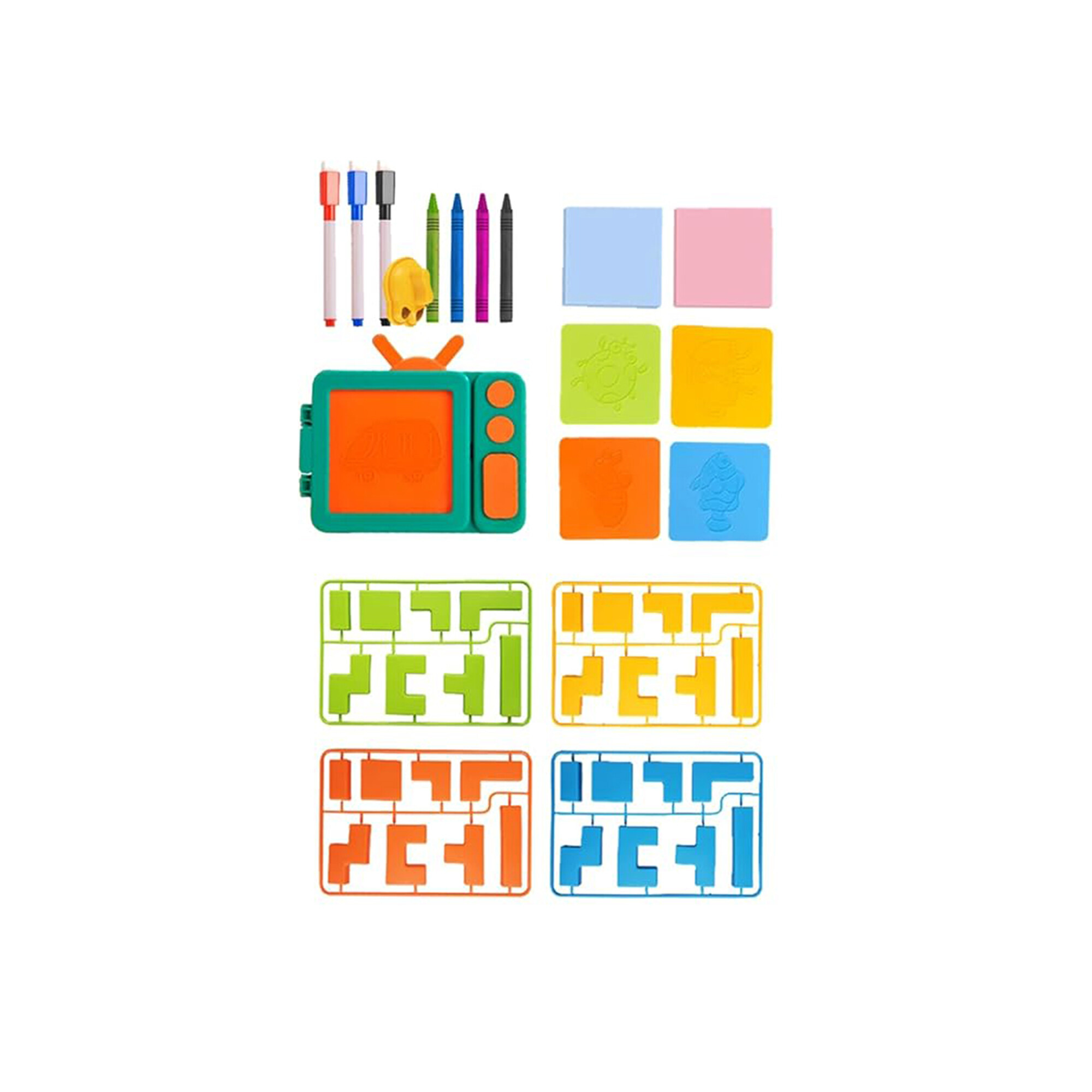 Aga4Kids Dětská tabule na fixy přichází s bohatou sadou příslušenství, která zajišťuje, že vaše děti budou mít vše, co potřebují pro okamžitou zábavu - 4x voskovka, 3x fix, 1x houbička na mazání, papírky, obkreslovací tabulky a tabulka.