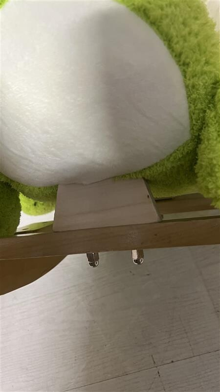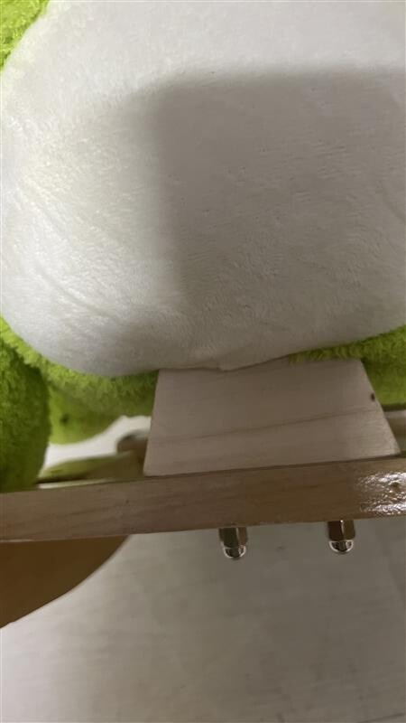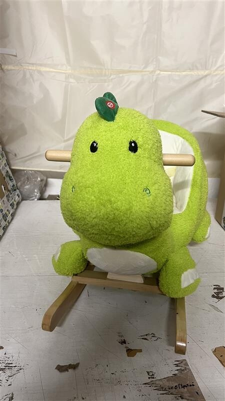 Houpací dinosaurus má zlomený prvek, který drží zadní část dinosaura, přilepeno lepidlem, dle potřeby je nutné si to opravit.