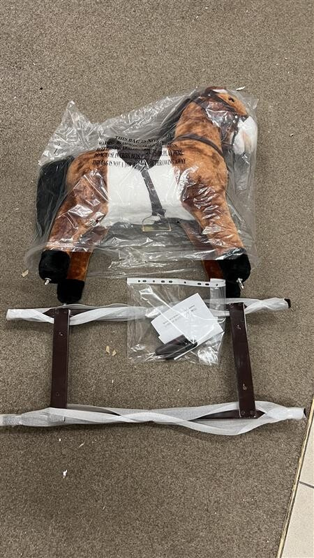 - Hračka má sedlo s třmeny, uzdu a dřevěné rukojeti