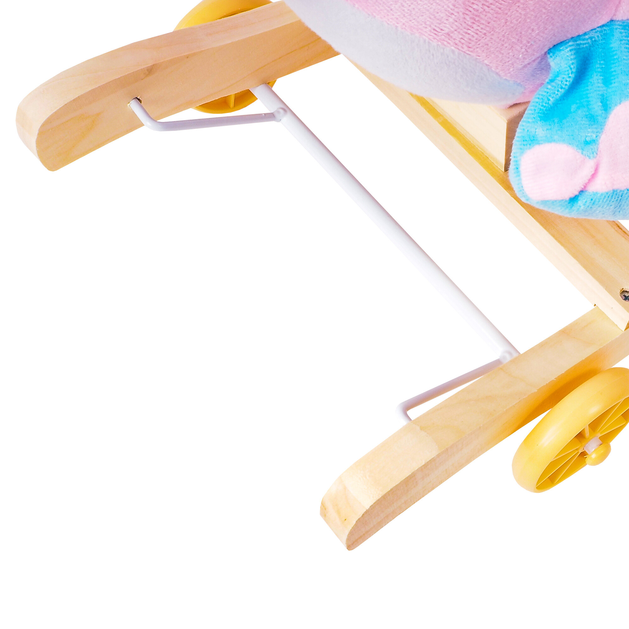 Pevné dřevěné lišty a rukojeti pomáhají dítěti udržet rovnováhu. Překlopením jednoduchého mechanismu na lištách vysunete kolečka, čímž ve vteřině změníte houpací hračku v jezdícího sloníka.