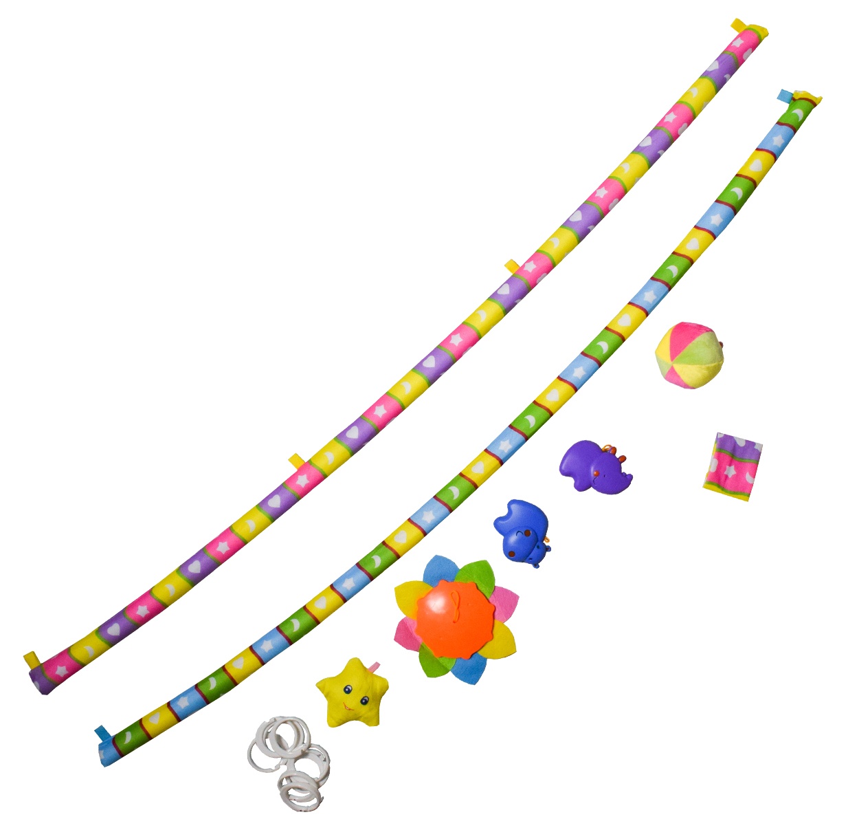 - Hračky lze z hrazdičky snadno odepnout a používat samostatně