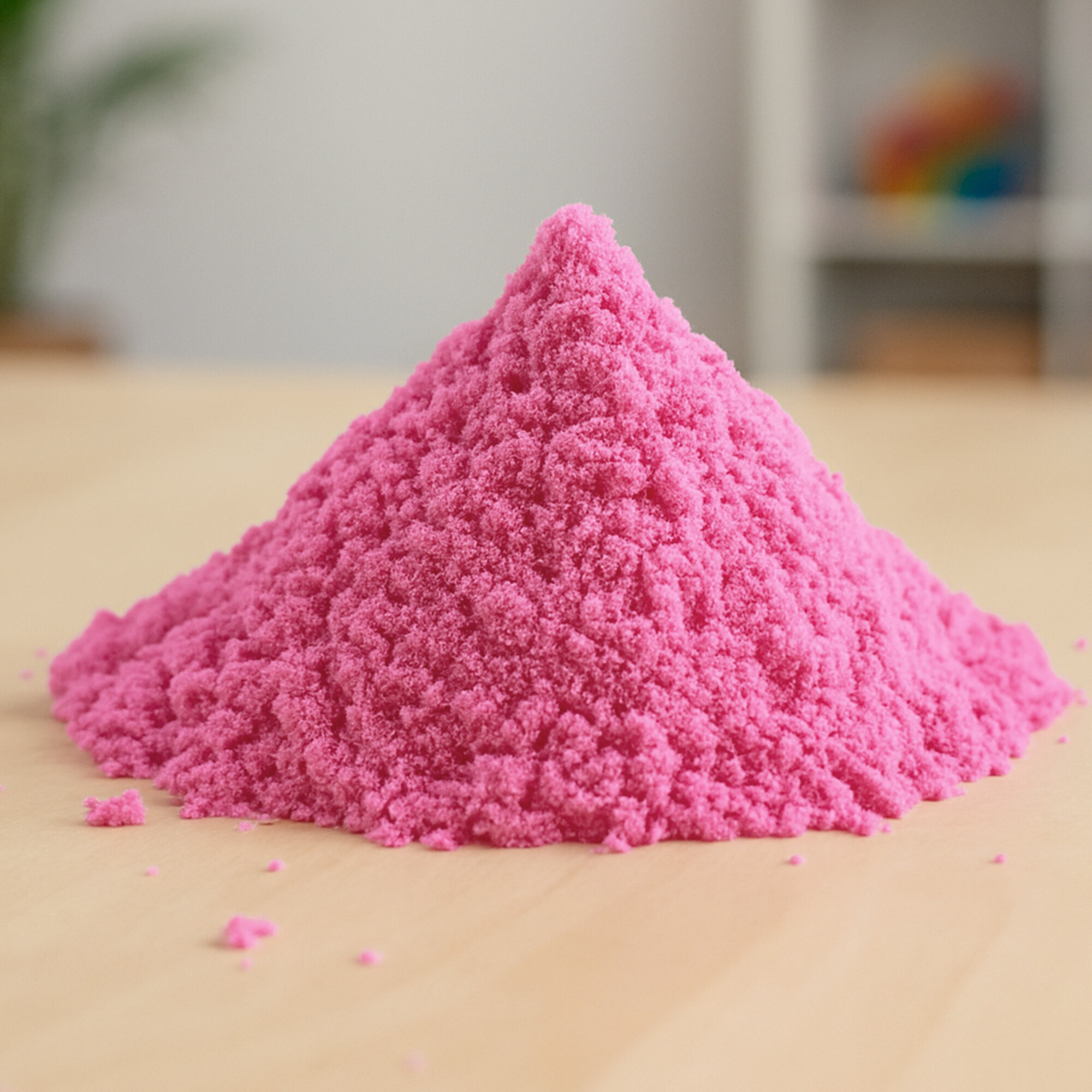 Kinetický písek spojuje vlastnosti písku a unikátní patentové technologie, nikdy nevysychá a neztrácí postupem času své vlastnosti.