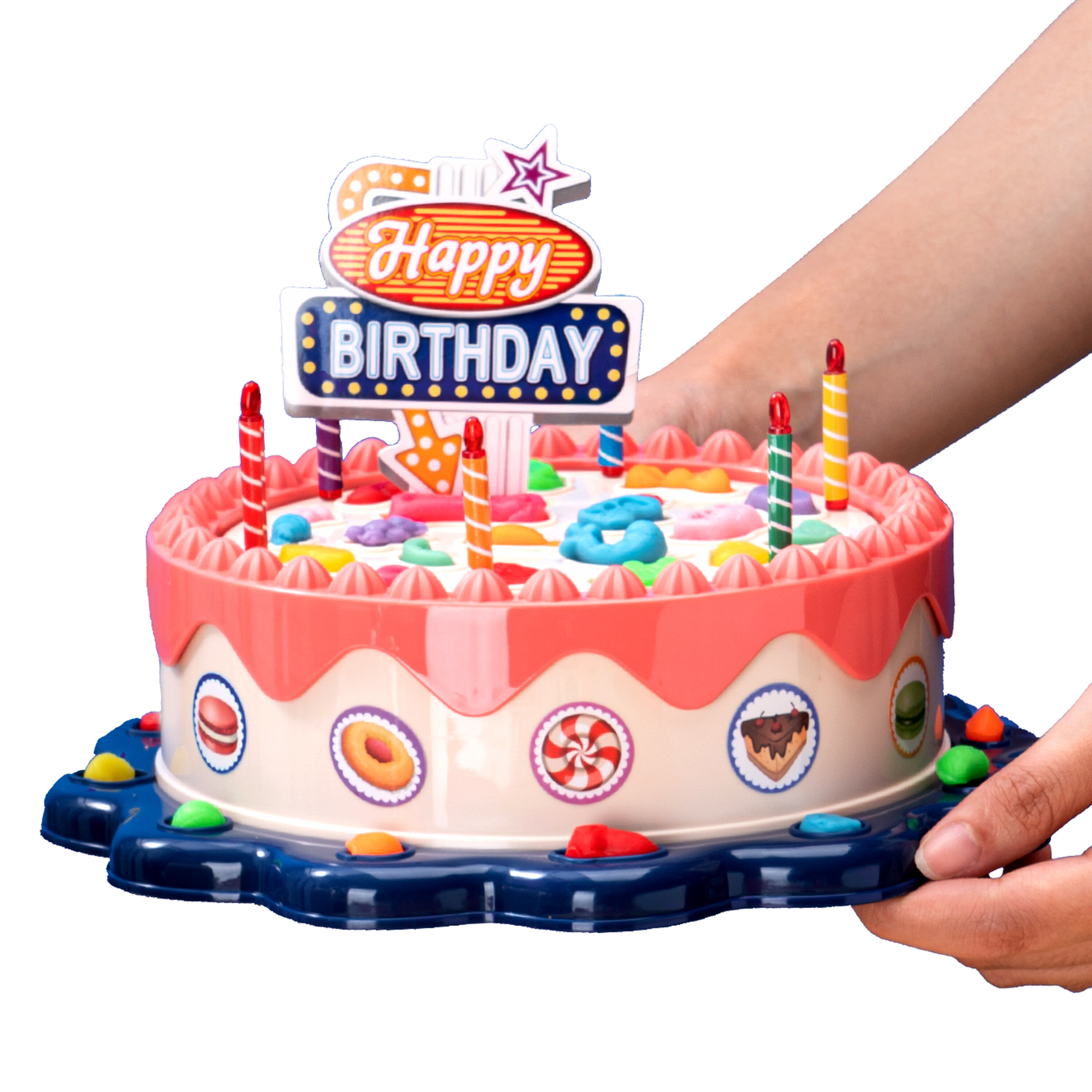 Sfoukněte svíčky a užijte si svůj speciální den. Lahodný, barevný, plastový narozeninový dort je ideální pro každou zvláštní příležitost. Tento dort je dodáván s barevnými plastelínami a příslušenstvím pro lepší práci s modelínou.