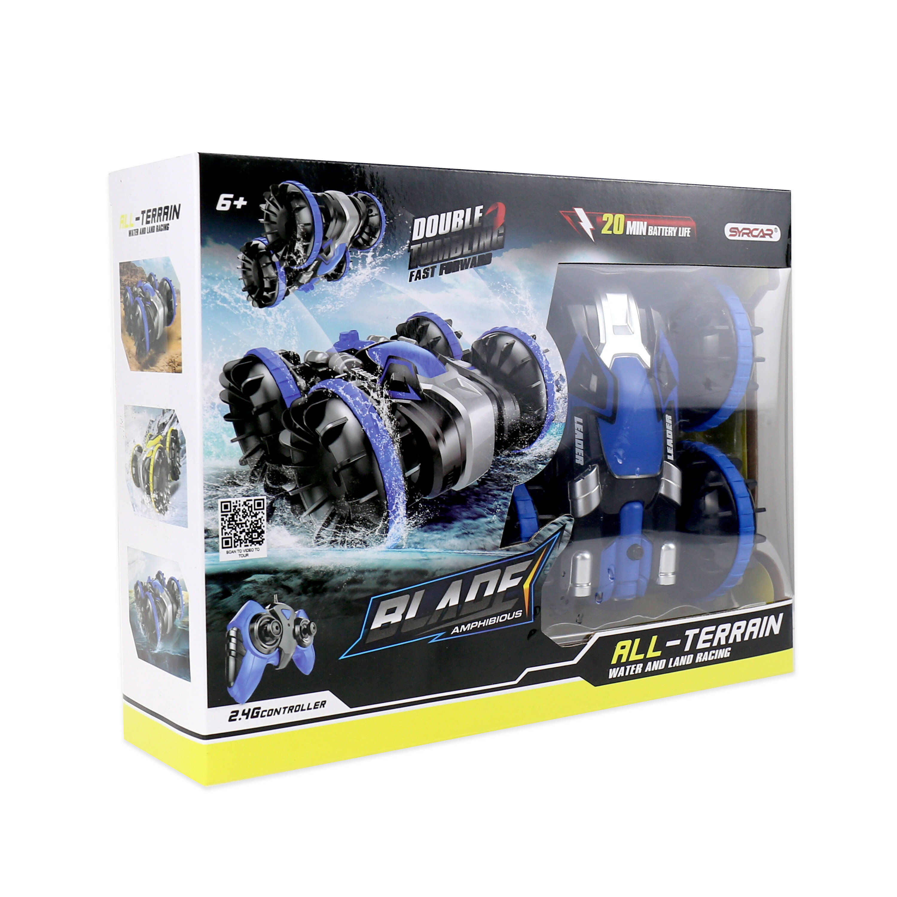 Auto na dálkové ovládání, které jezdí nejen po zemi, ale i po vodě. Pneumatiky se speciálním vzorem zajišťují skvělou přilnavost v terénu a dobrou ovladatelnost při jízdě ve vodě.