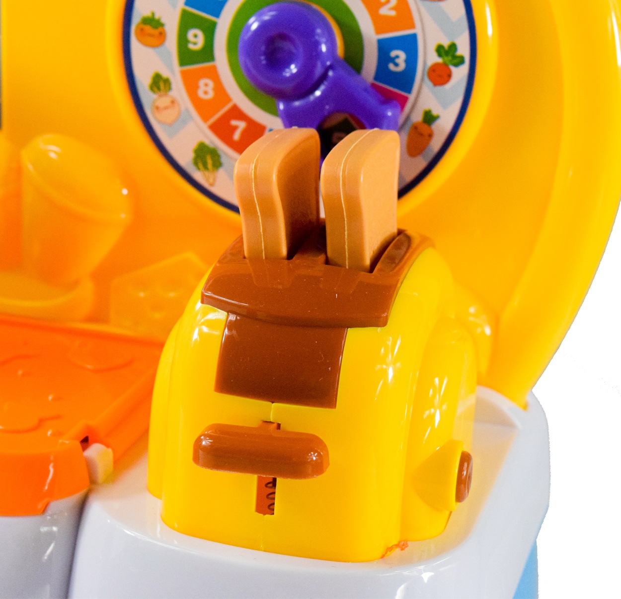 Tento model dětské kuchyňky je vybaven funkčními prvky a doplňky.