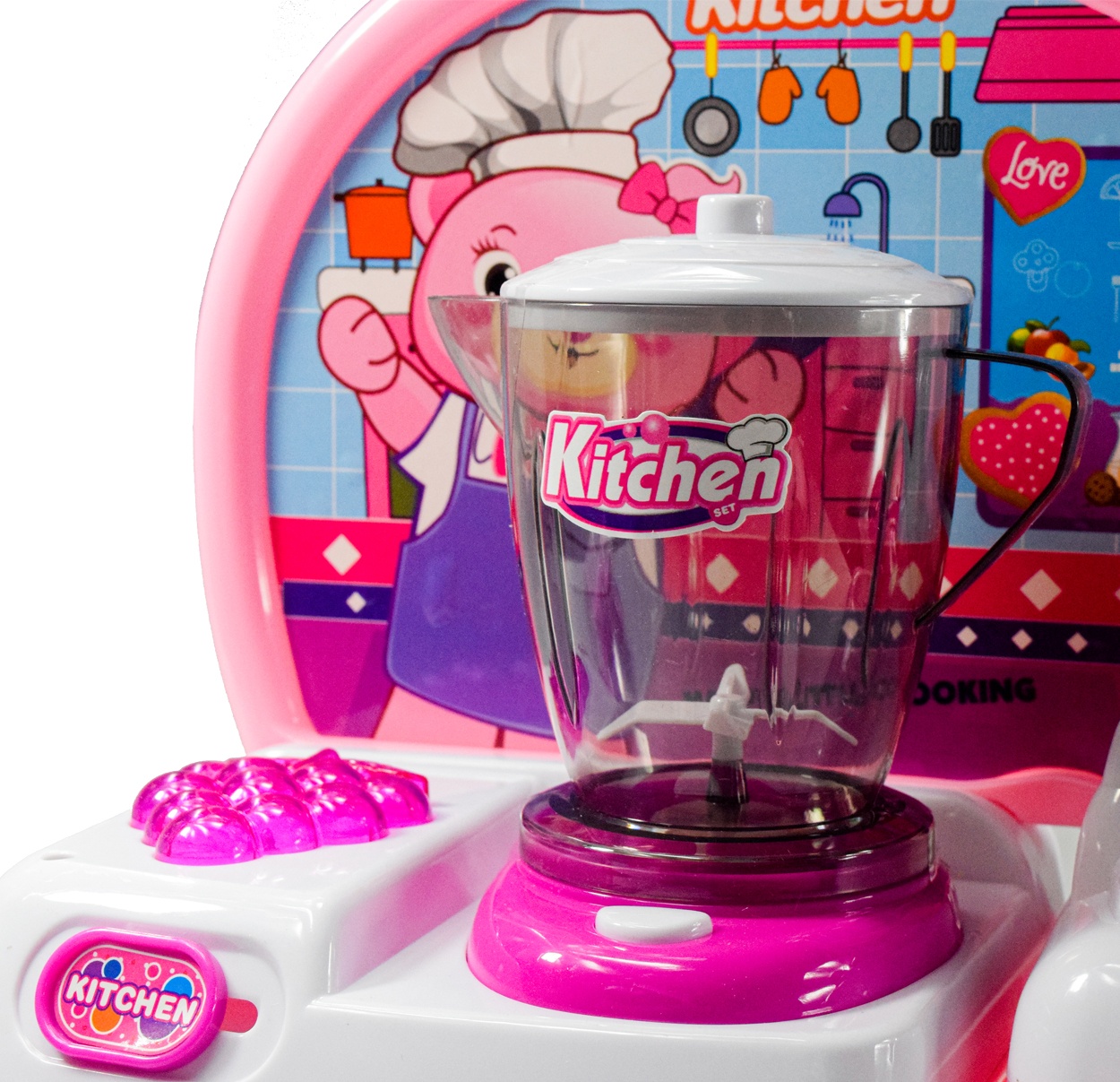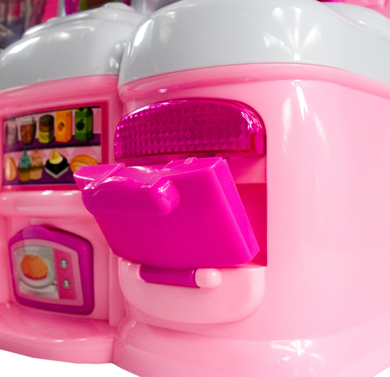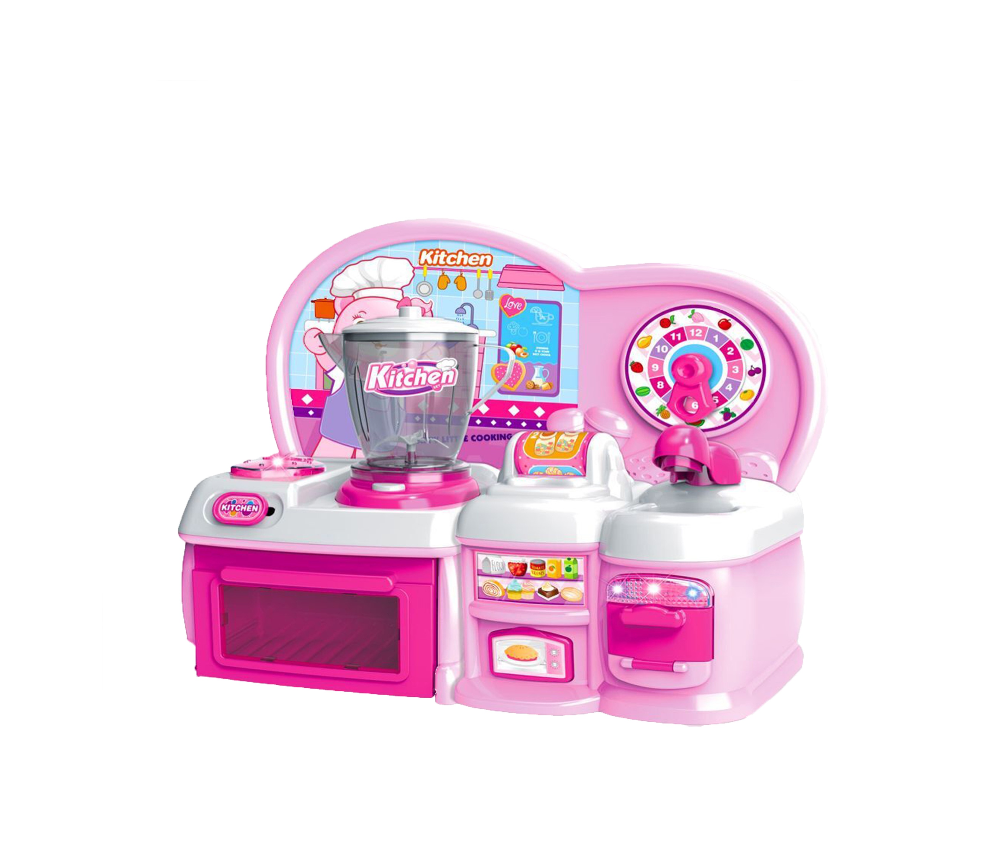 Tento model dětské kuchyňky je vybaven funkčními prvky a doplňky.
