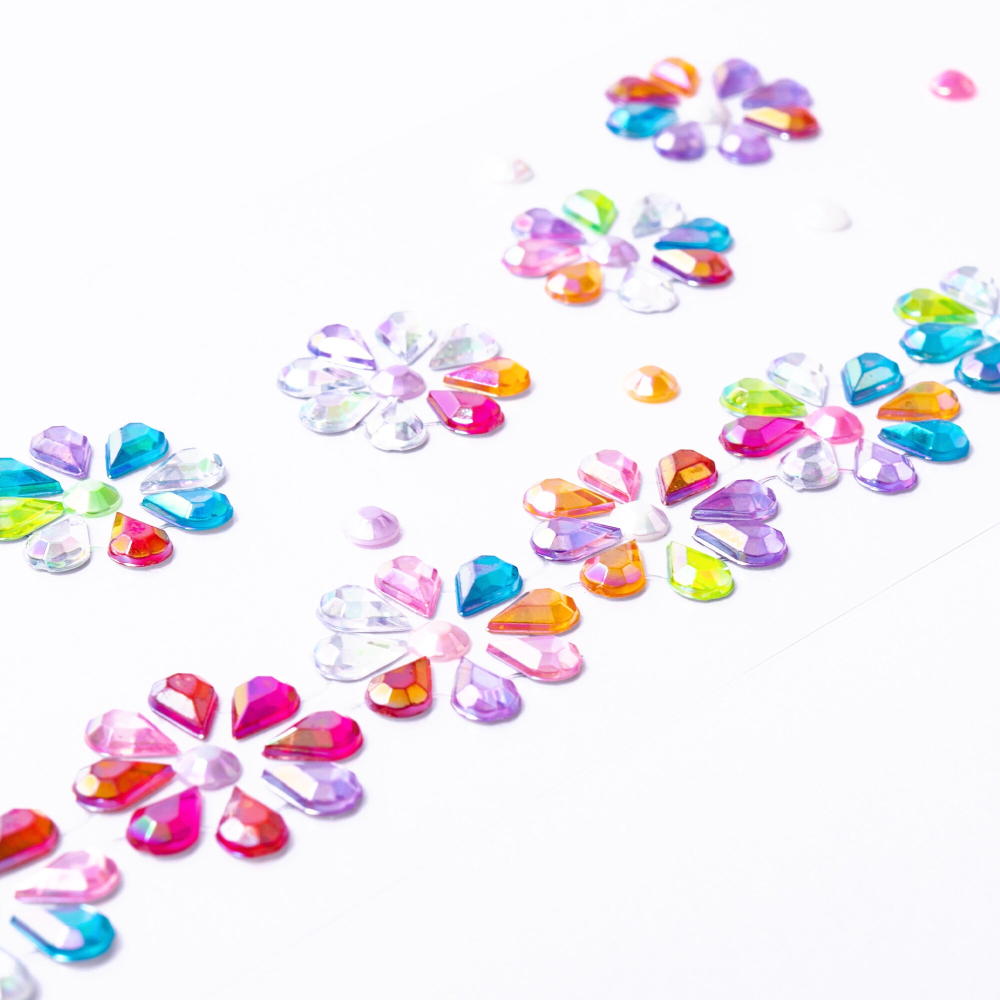 Použití našich kamínků je velmi jednoduché. Stačí je odlepit z podkladového papíru a přilepit na požadované místo. Můžete je použít na obličej, vlasy, nehty nebo jakoukoli jinou část těla. Kamínky pevně drží na místě, ale zároveň je lze snadno odstranit bez poškození pokožky nebo vlasů. Díky tomu můžete měnit svůj vzhled podle nálady a příležitosti.