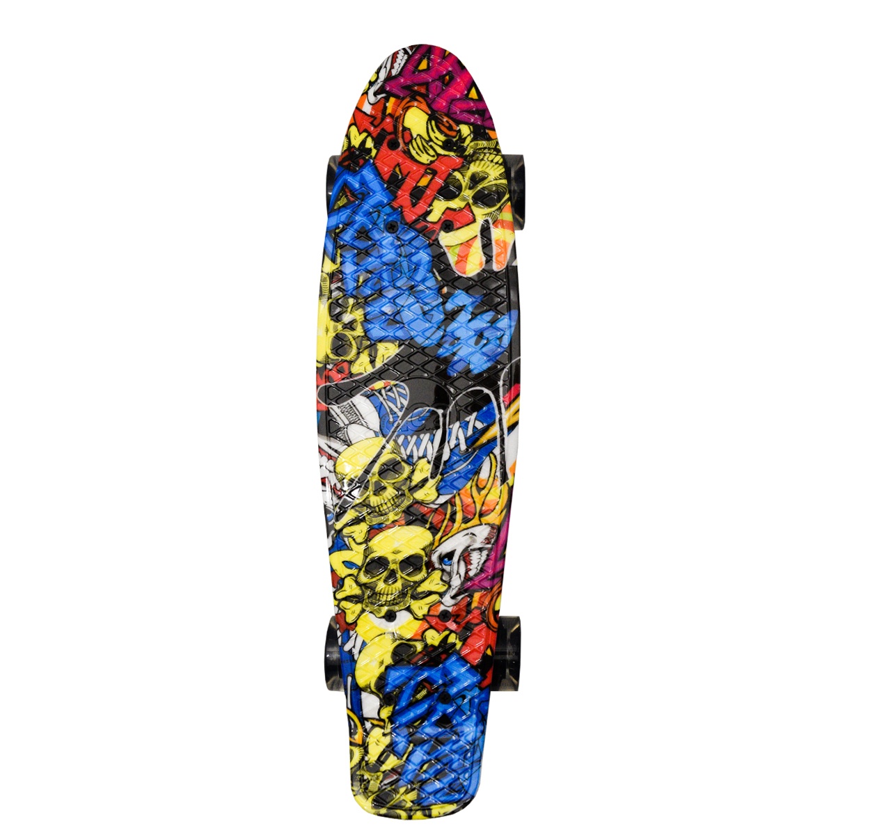 Výhodou tohoto skateboardu je praktické mřížkování na vrchní straně desky, které zamezuje nechtěnému uklouznutí nohy z desky.