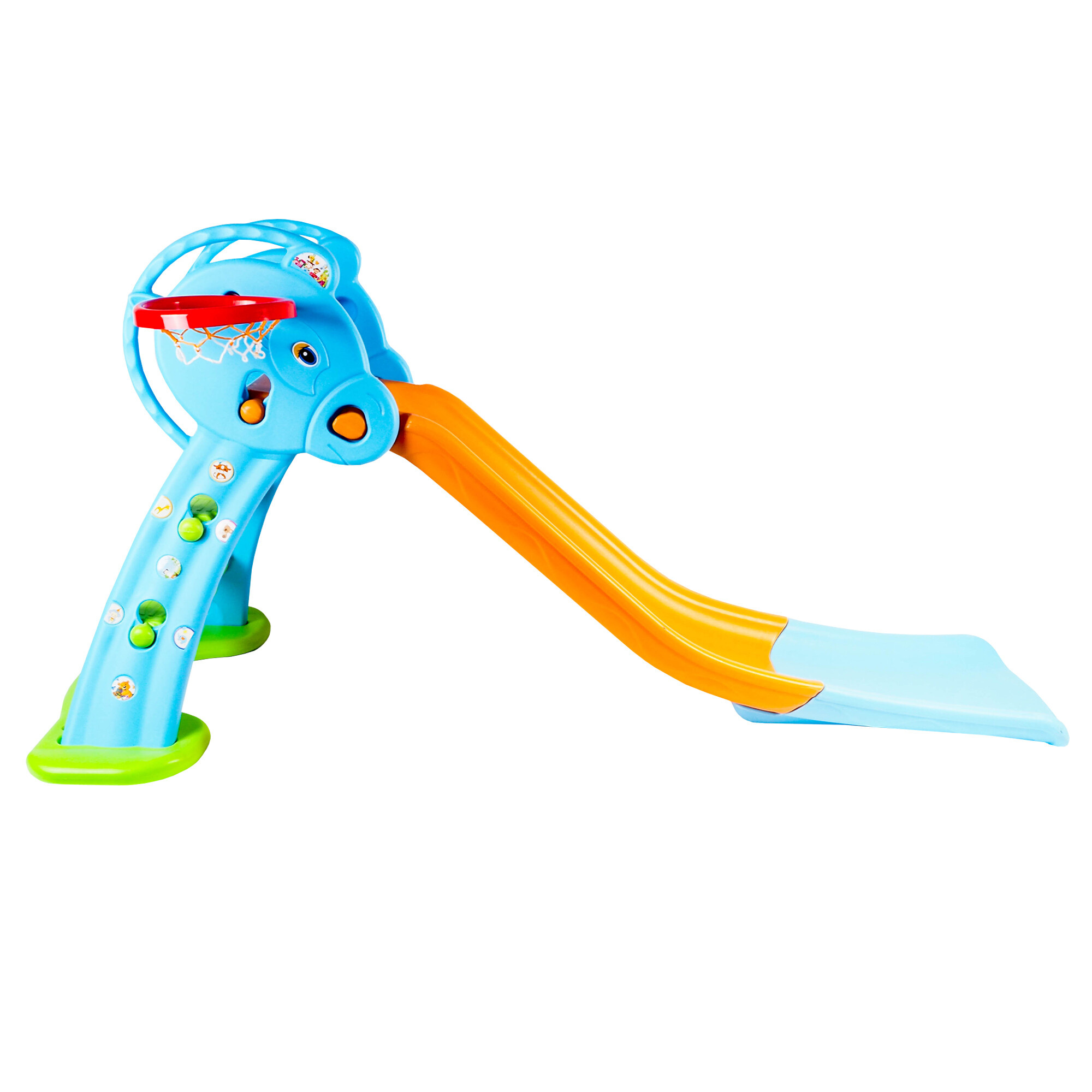 Je vybavena také basketbalovým košem a míčkem, což dětem poskytuje další možnosti zábavy a pohybu. Děti si mohou hrát na malého basketbalistu a trénovat své dovednosti při házení míčem do koše.