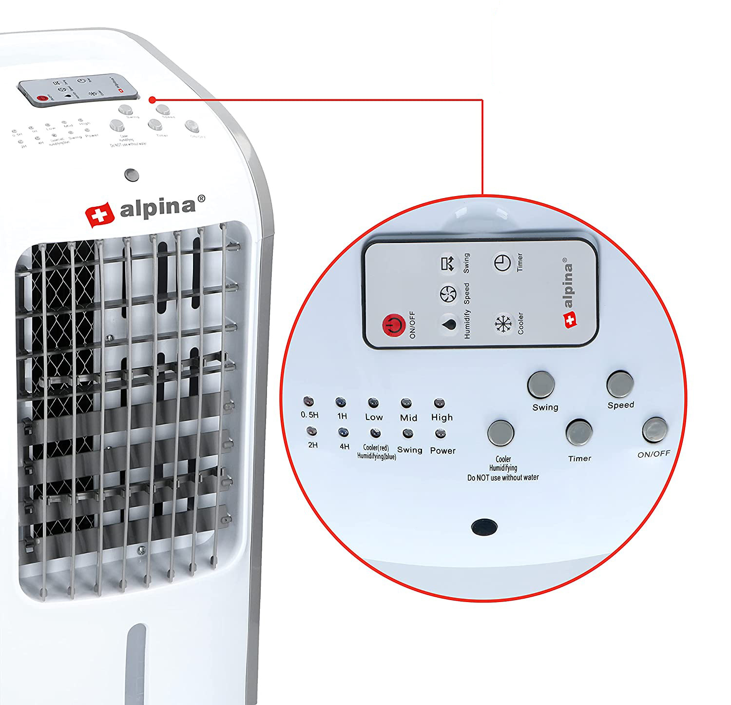 Multifunkční přístroj Alpina navíc vzduch nejen ochlazuje, ale i zvlhčuje. Můžete využít samostatného zvlhčování vzduchu bez chlazení nebo zapnout pouze ventilátor.