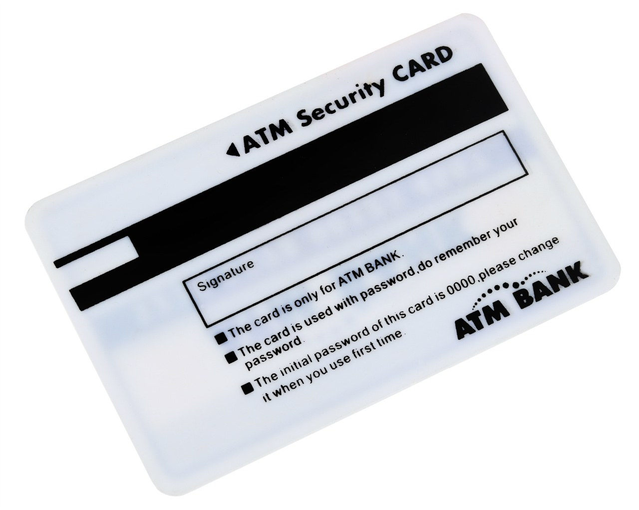 Peněženka ve tvaru bankomatu s bankomatovou kartou a PIN zámkem.