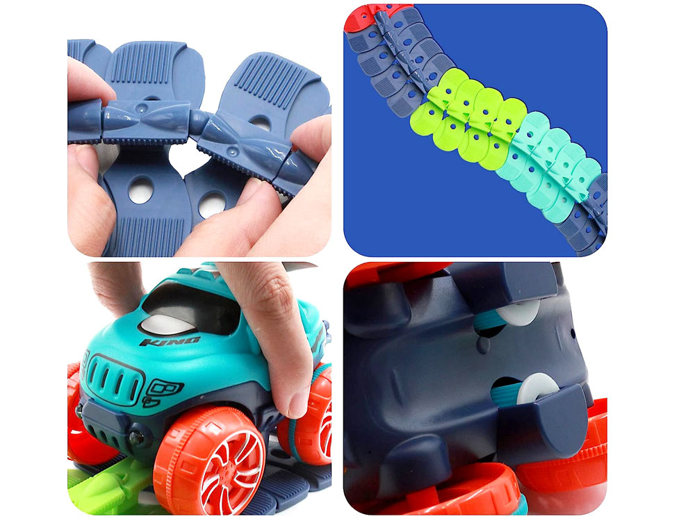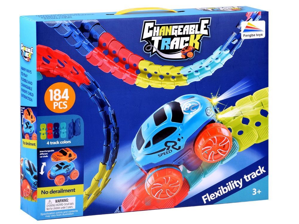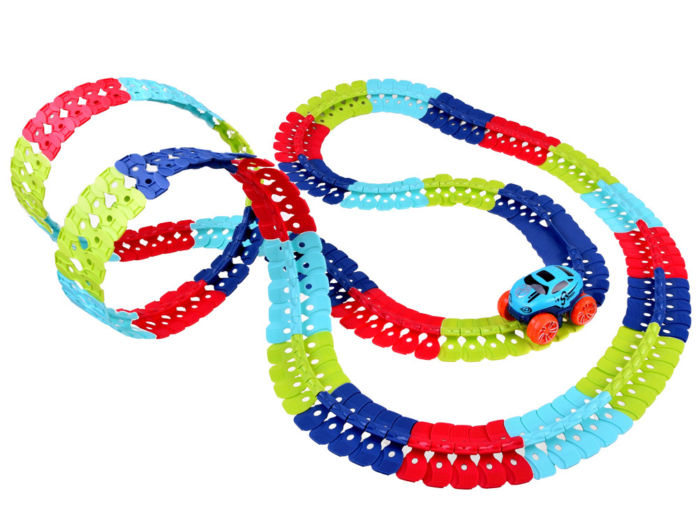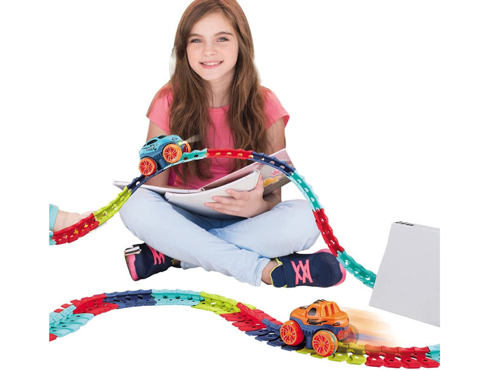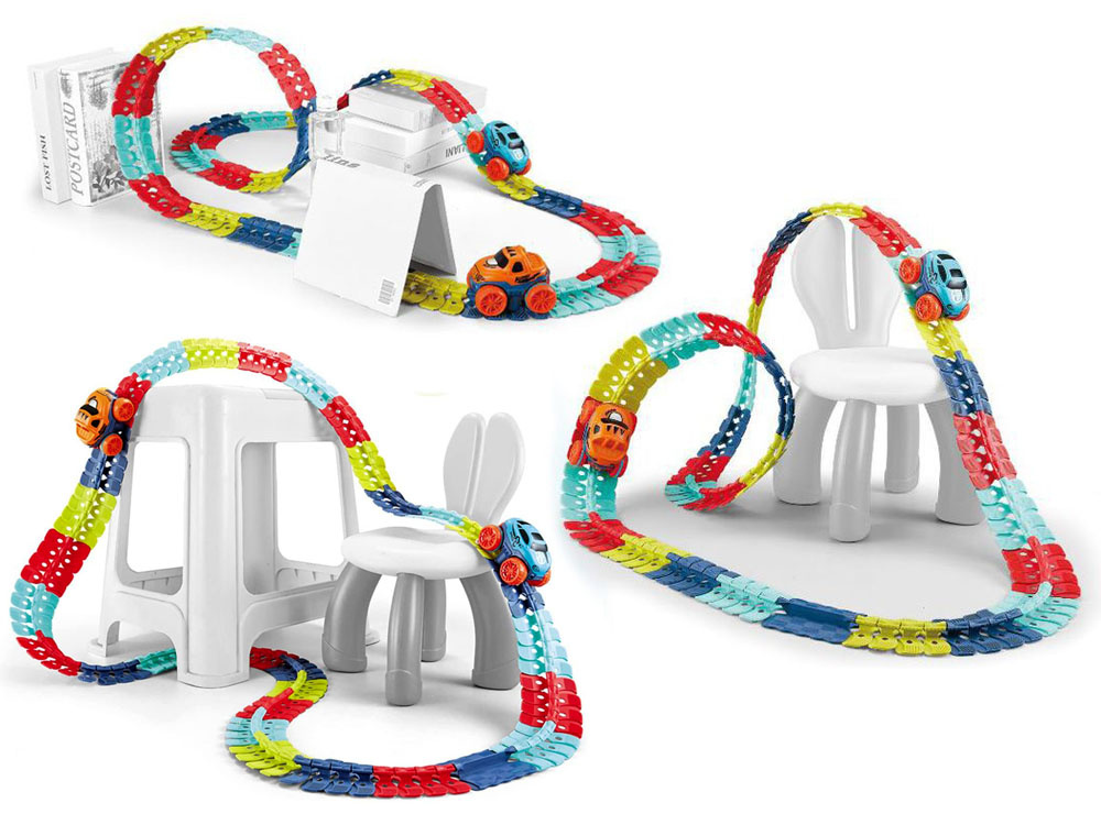 Sada obsahuje až 184 prvků, které umožňují postavit dráhu o maximální délce 440 cm! Díky neobvyklému tvaru konektorů lze dráhu libovolně měnit, kroutit a vytvářet zatáčky. Pomocí dětských židlí, knih nebo krabic můžete vytvořit skutečnou překážkovou dráhu plnou stoupání a prudkých sjezdů.