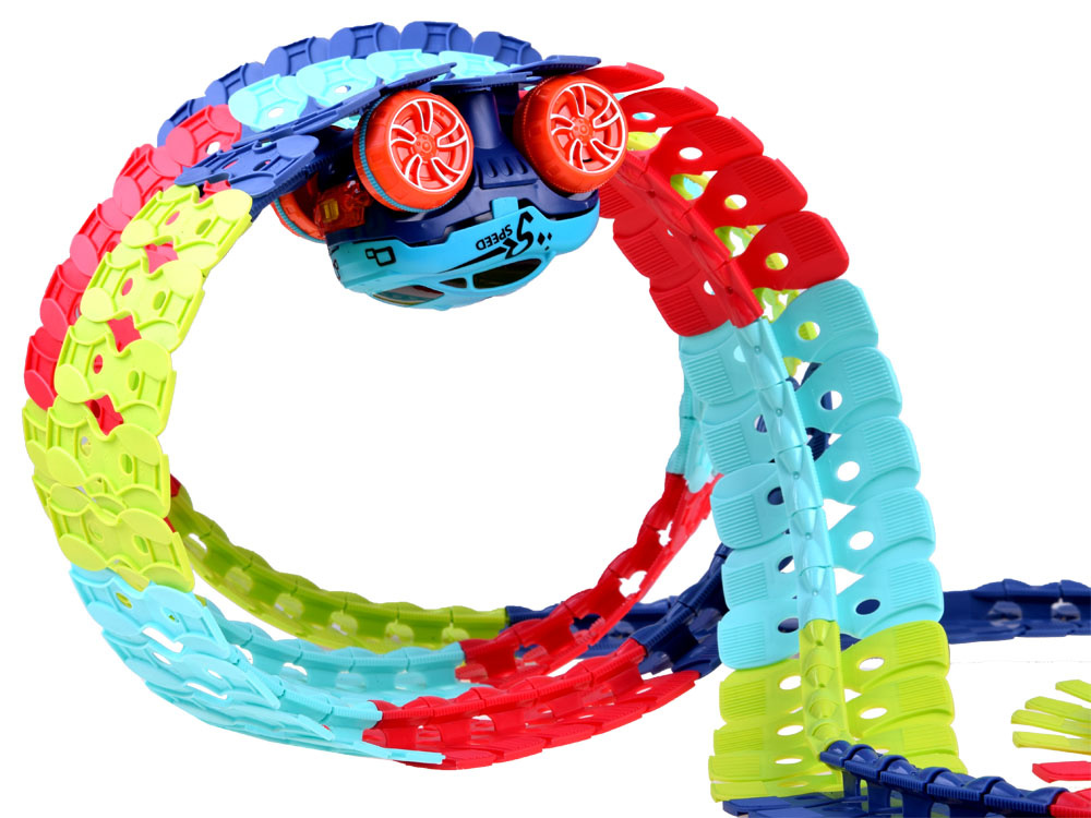 Absolutní novinka, flexibilní dráha s inovativním způsobem spojování dílků, vám poskytne hodiny neuvěřitelné zábavy.