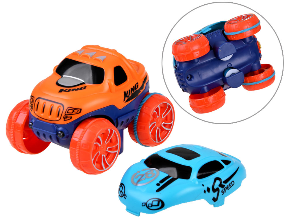 Na výběr jsou karoserie ve dvou barvách- oranžové a tyrkysové. Po vložení 3 baterií AAA (nejsou součástí balení) může autíčko samo jezdit po připravené trase. Stačí, když vůz umístíte na startér (část s nápisem GO) a nastartujete jej tlačítkem umístěným v zadním světle vozu. Hračkářské autíčko okamžitě vyrazí obrovskou rychlostí vpřed. Při jízdě svítí zadní světla červeně, zatímco přední světla svítí zeleně.
