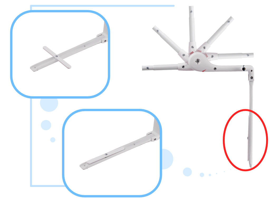 Montáž zábradlí je neuvěřitelně snadná! začněte montáží a vložte příslušné části rámu do otvorů v lemu z textilní síťoviny. Pak stačí zvednout matraci postele a vložit pod ni vyčnívající základy zábradlí!