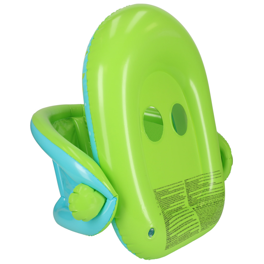 Zelené kolo se sedadlem je ideální pro batole, které se právě začíná učit plavat. Díkyotvorům na nohy bude vaše dítě v kolečku stabilně sedět a nevypadne z něj. Nafukovací stříška poskytuje ochranu jemné pokožce vašeho dítěte před škodlivými slunečními paprsky. Navíc při odchodu do bazénu lze stříšku odejmout. Kolo je vyrobeno z odolného PVC, takže vydrží více než jednu letní sezónu.