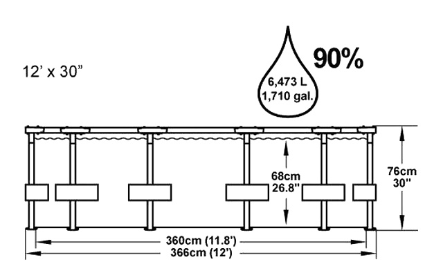 Mimořádně pevné stěny tohoto bazénu jsou konstruovány z materiálu Dura Plus™, což je 3vrstvý vyztužený materiál s polyesterovou mřížkou uloženou mezi dvěma vrstvami vysoce odolného PVC. Celková tloušťka stěny je 0,40 až 0,80 mm v závislosti na velikosti bazénu. Nabízí mimořádnou pevnost a odolnost.