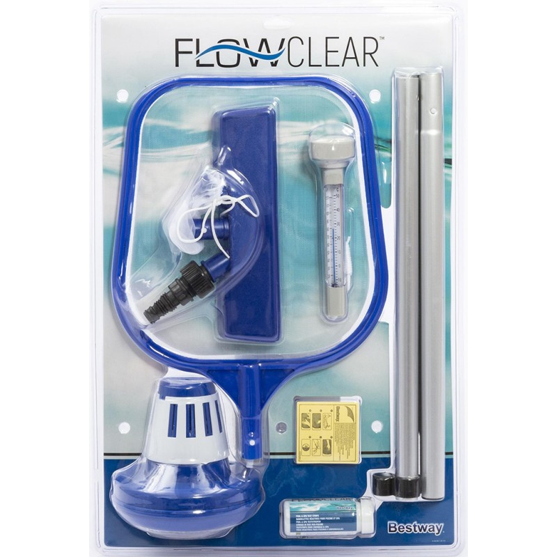 Tato sada na údržbu bazénu od značky Bestway obsahuje ruční bazénový vysavač, chemický plovák, bazénový teploměr, 50 testovacích proužku a 10 záplat.