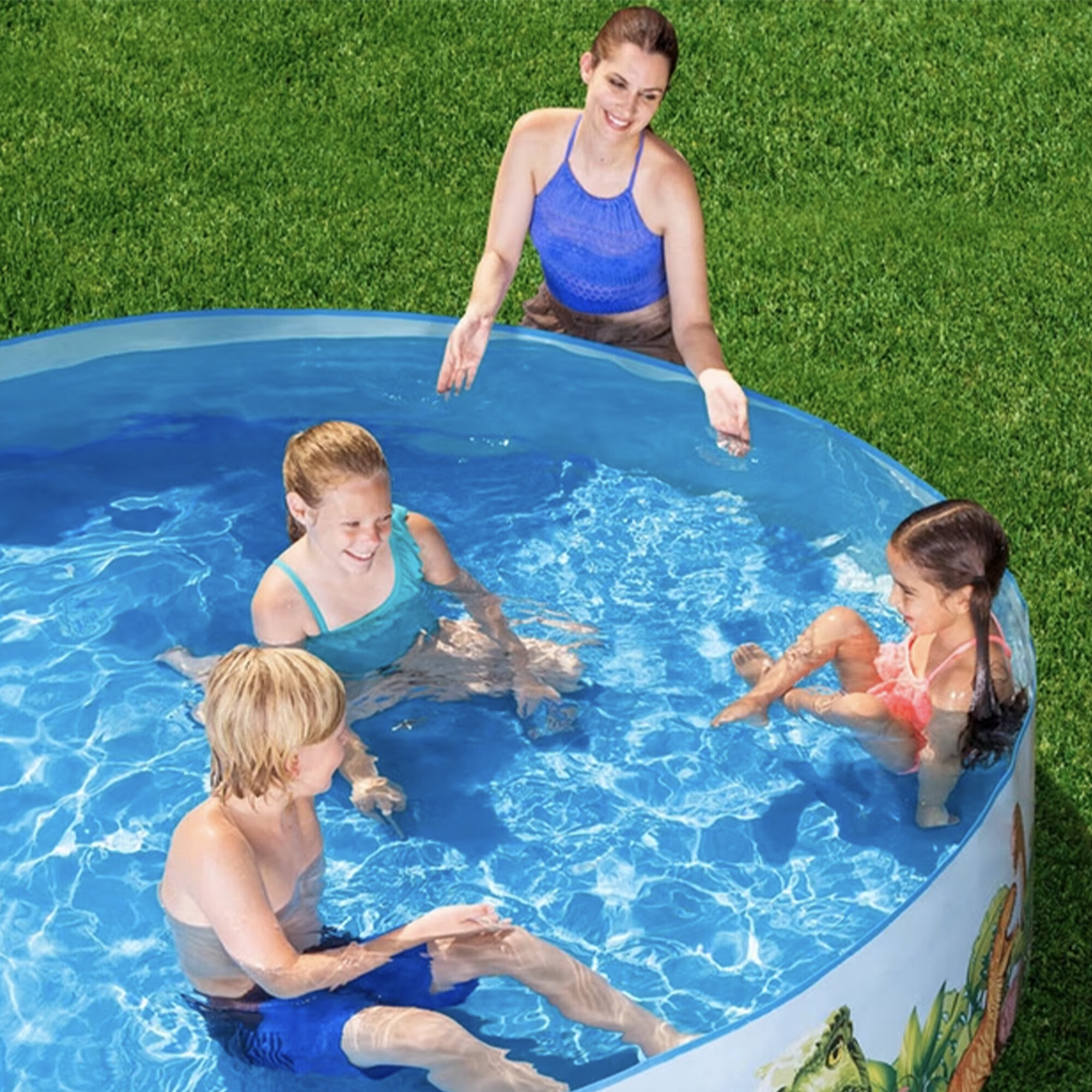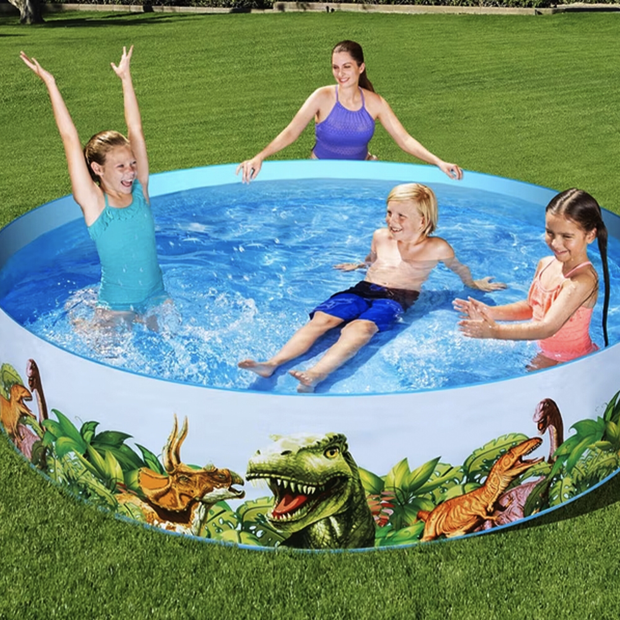 Dětský bazén Dino od renomované italské firmy Bestway je vyrobený z pevného vinylového materiálu, který se roztahuje při plnění vodou.