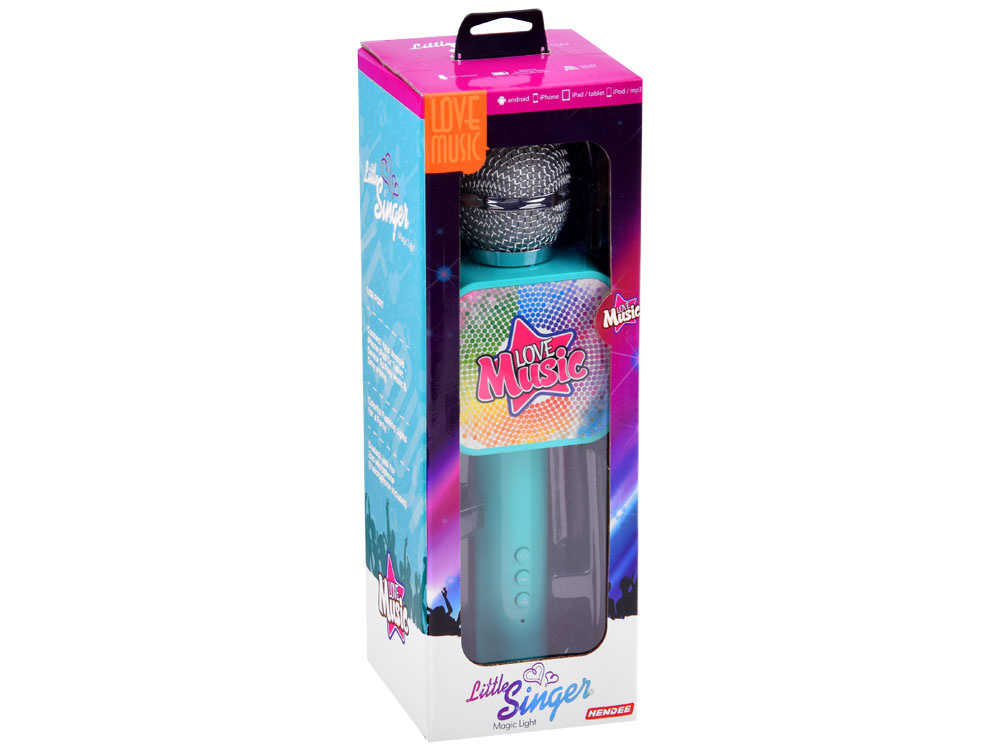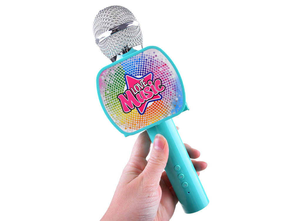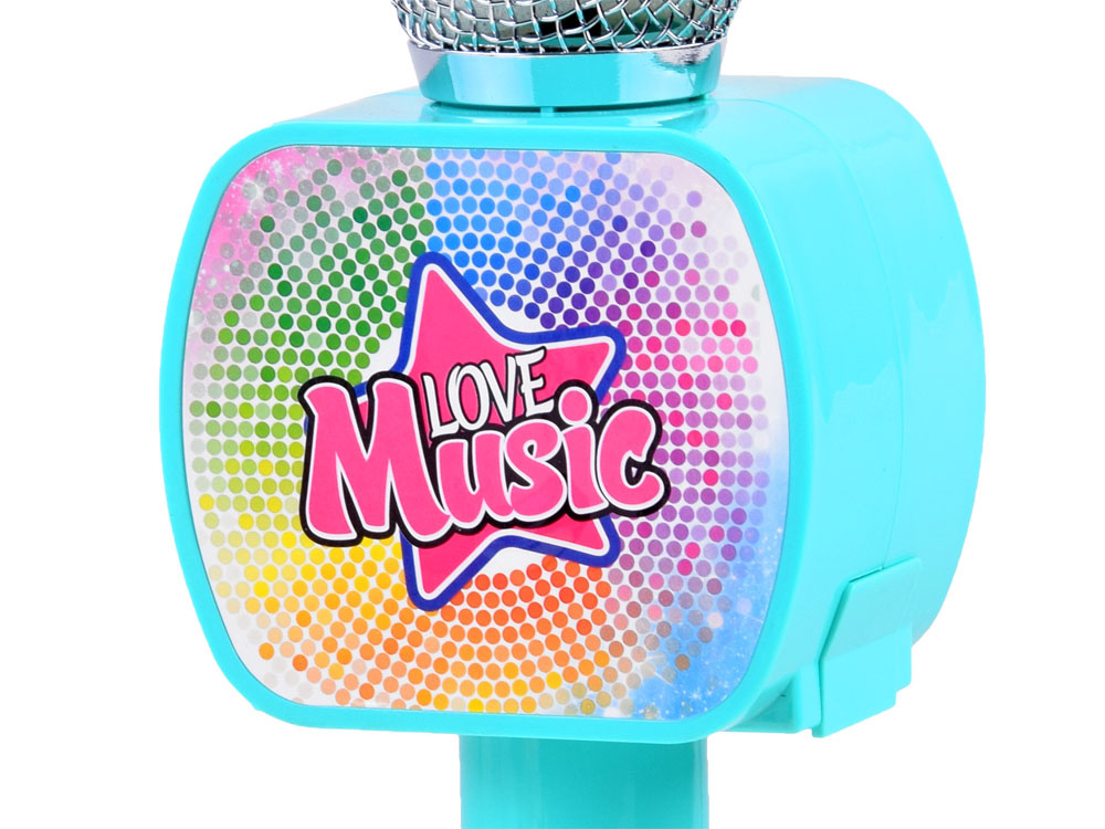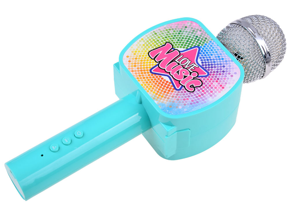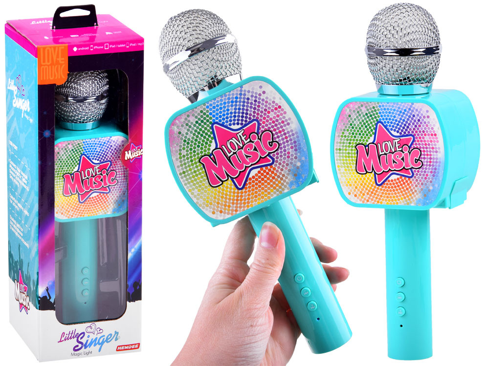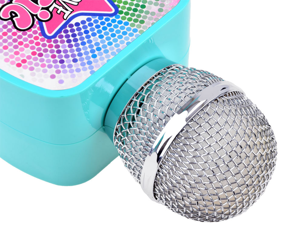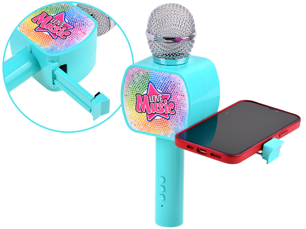 Mikrofon se připojuje přes Bluetooth k zařízení se systémem Android nebo IOS (chytrý telefon, iPhone nebo tablet), takže si můžete přehrávat svou oblíbenou hudbu téměř kdykoli.)Součástí vybavení je také držák na telefon. Náš chytrý telefon je umístěn ve správném úhlu a můžeme z něj snadno číst texty písní, stejně jako při skutečném karaoke.