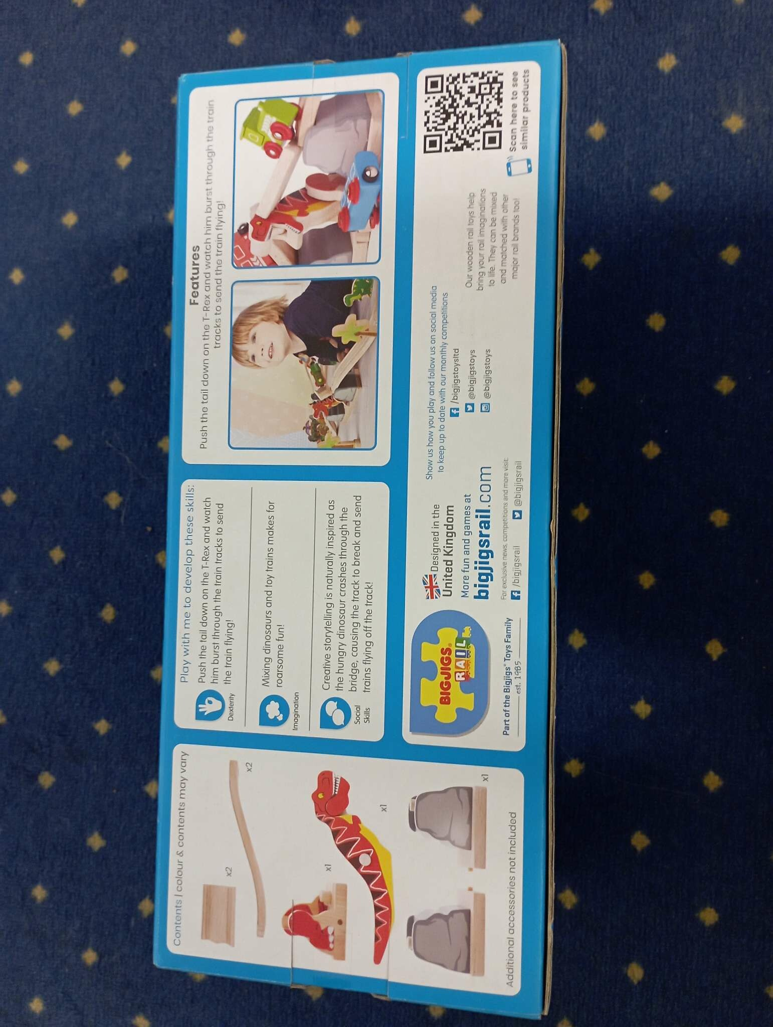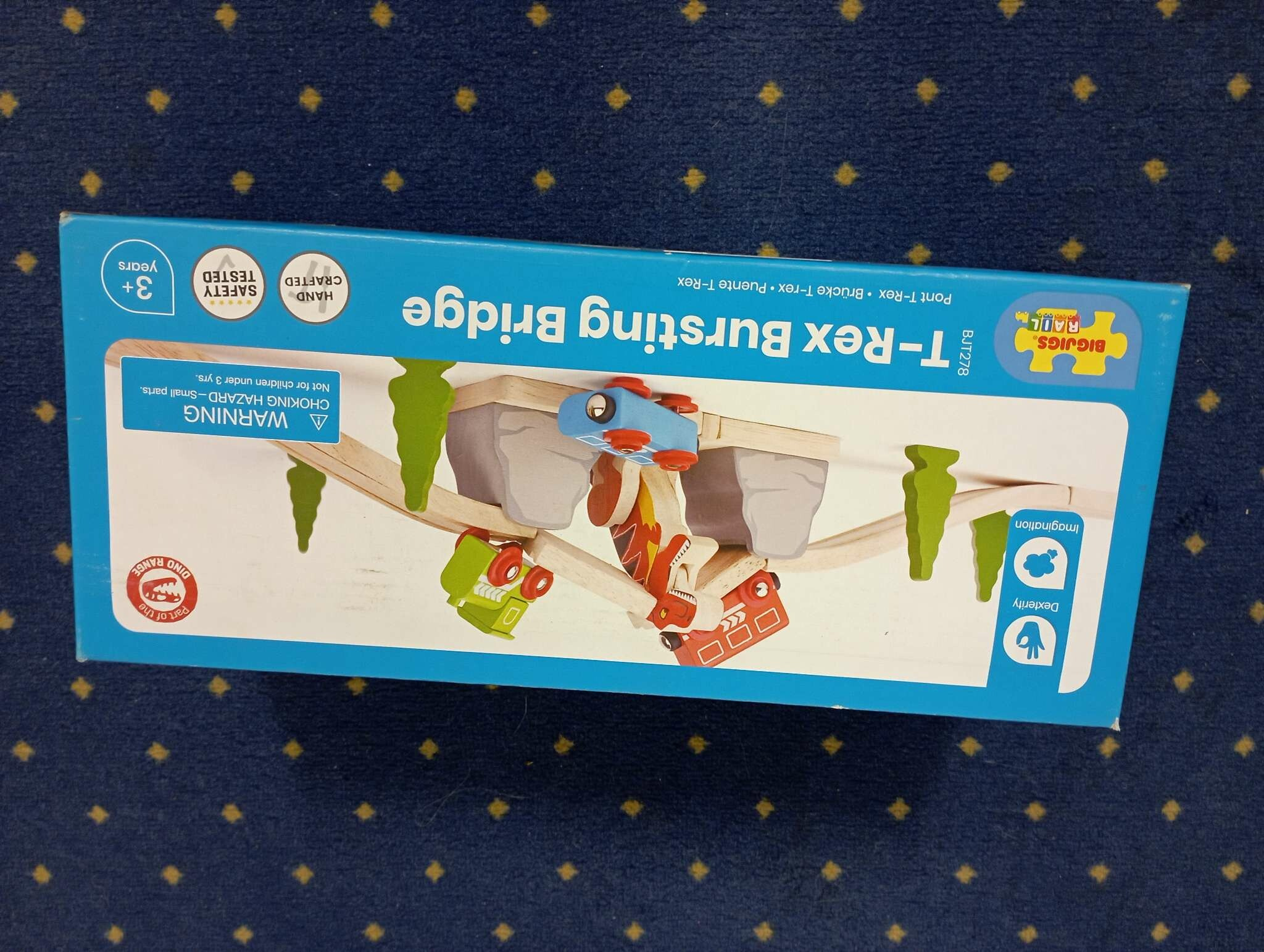 Míchání dinosaurů a vláčků přináší skvělou zábavu! Toto úžasné prehistorické příslušenství bude bavit mladé nadšence do železnice celé hodiny. Kreativní vyprávění je přirozeně inspirováno, když hladový dinosaurus prorazí most, což způsobí, že se trať rozbije a dokonce pošle vlaky létat vzduchem mimo trať! Podporuje kreativní a nápaditou hru. Hlavní vlastnosti: Vláčkodráhy a jejich příslušenství značky Bigjigs Rail je možno kombinovat se všemi dalšími dřevěnými vláčkodráhami na trhu.Vyrobeno z kvalitních a zodpovědně získaných přírodních materiálů.Odpovídá současným evropským bezpečnostním normám.Podporuje představivost, obratnost a koordinaci.