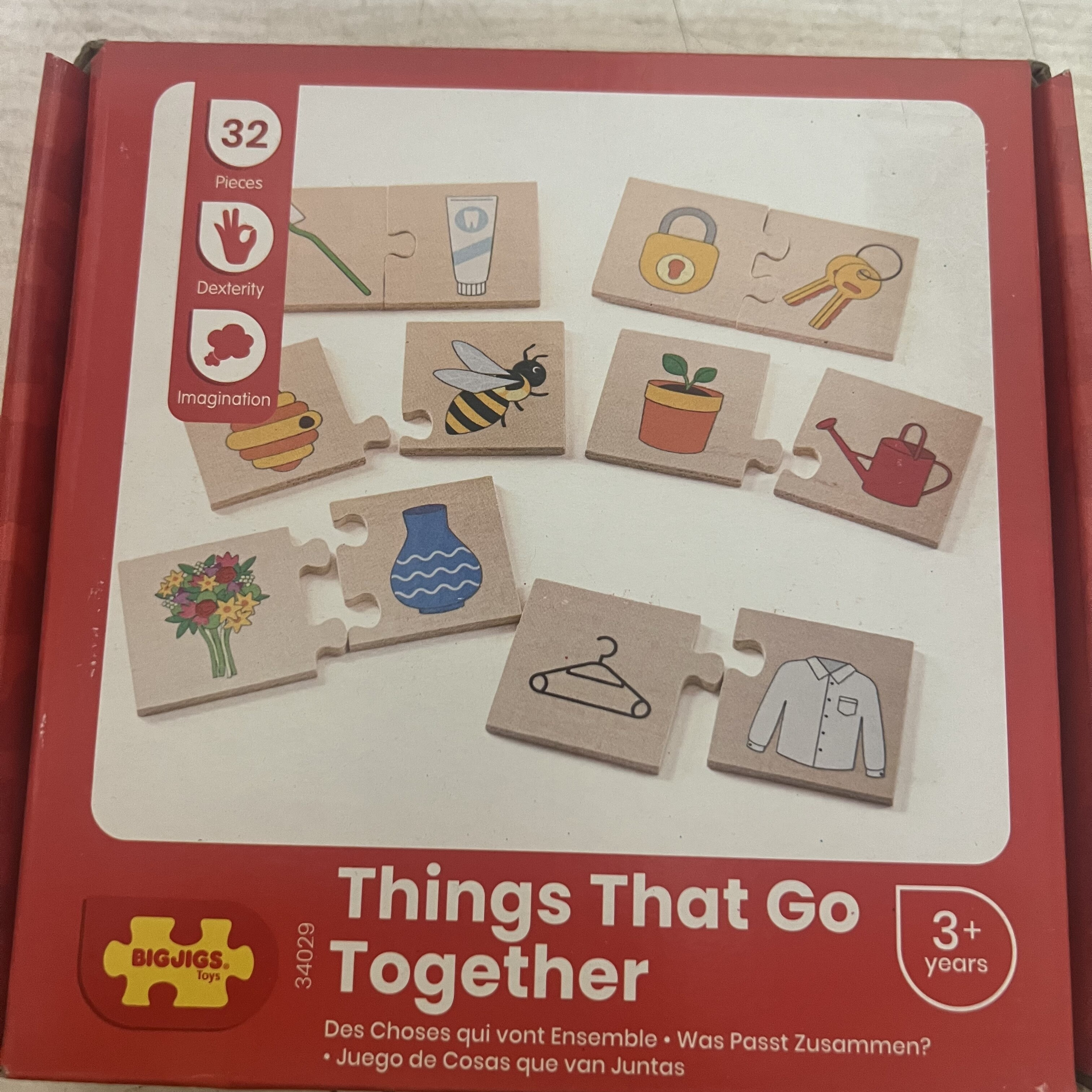 Dokážete správně poskládat dřevěné dílky puzzle? Skládačka Co k sobě patří, učí děti o různých každodenních předmětech, které k sobě patří. S čím se čmelák doplňuje? A co visací zámek?Toto vzdělávací puzzle je zábavný způsob, jak rozvíjet slovní zásobu dětí, když spojují dvojice a učí se o každém předmětu podrobněji. Hladké robustní kousky skládačky mají ideální velikost pro malé ručičky, aby je mohly uchopit, umístit a prozkoumat.Vyrobeno z prvotřídního, zodpovědně získaného dřeva a barveno netoxickými barvami a laky. Splňuje aktuální evropské bezpečnostní normy. Vyrobeno z vysoce kvalitních, zodpovědně získaných materiálů.