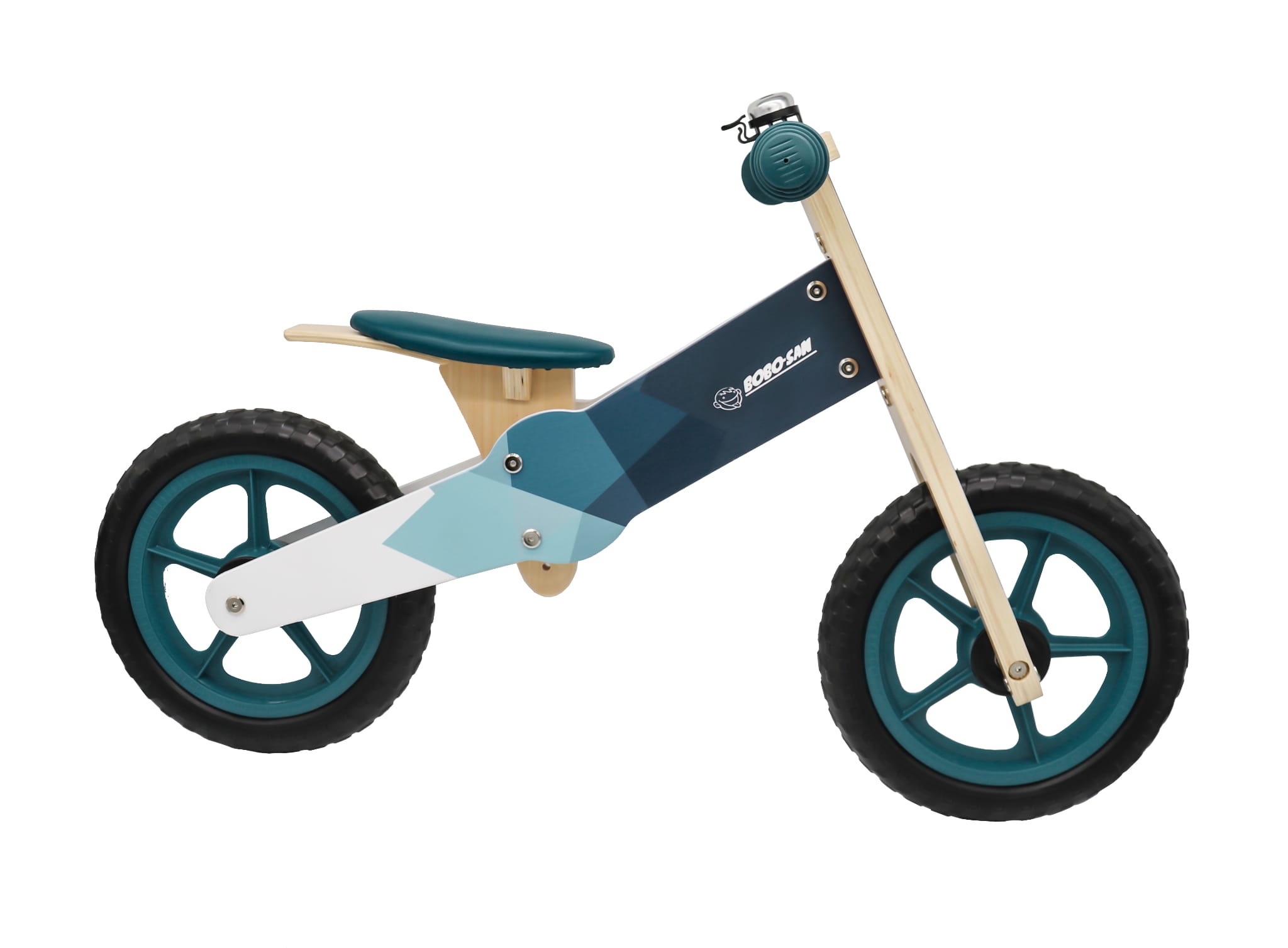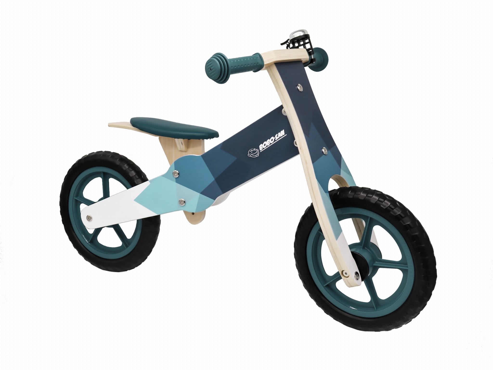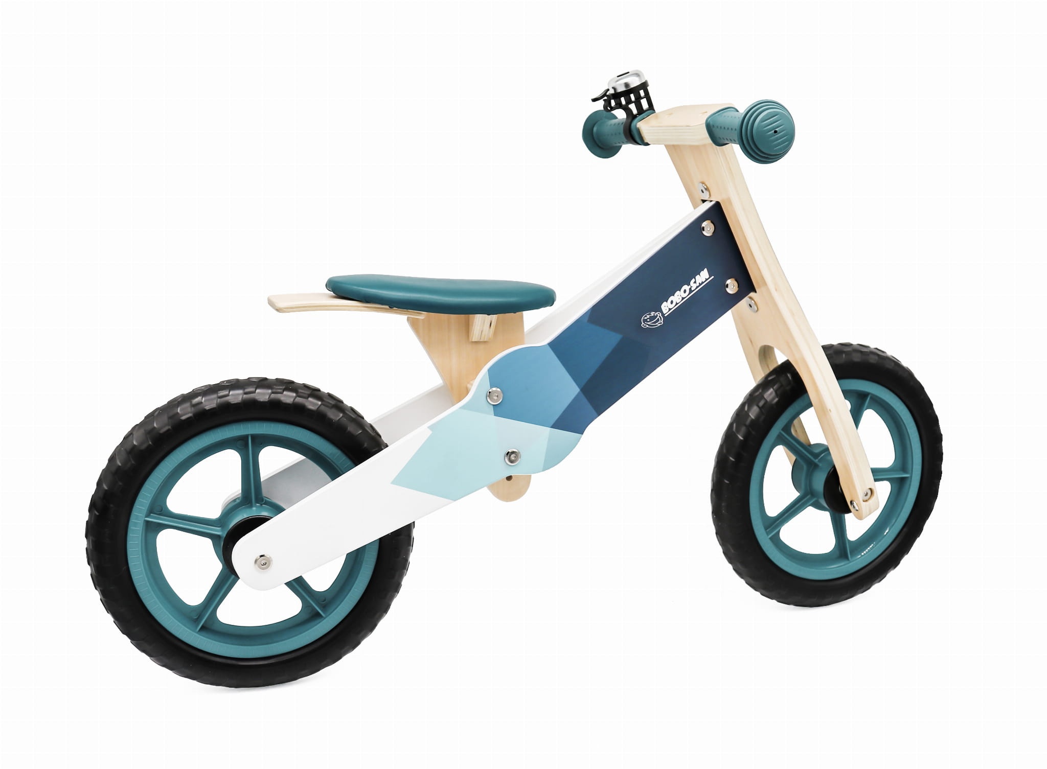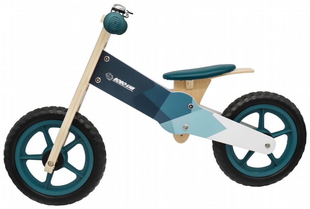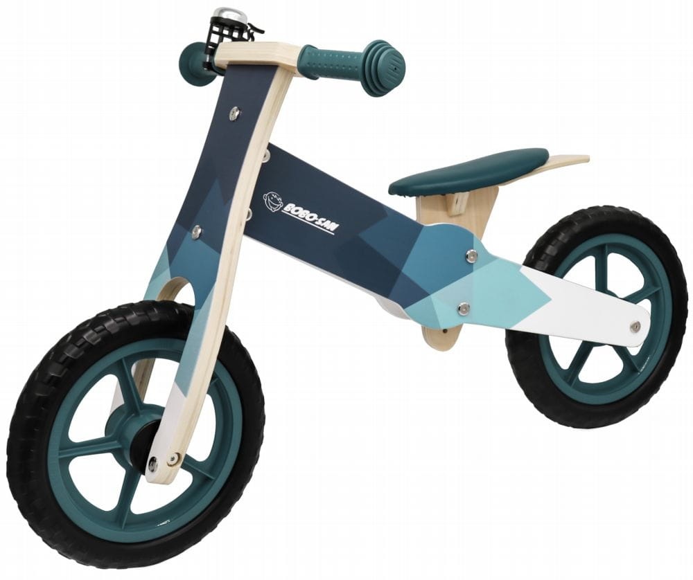Dětské dřevěné odrážedlo, se zatáčecími řídítky, ergonomicky tvarovaným a výškově nastavitelným sedátkem.