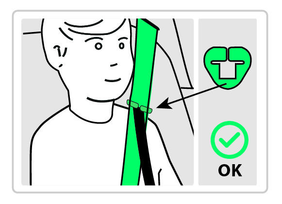 Sedadlo je vybaveno dalším vodítkem pro ramenní popruh, které zajišťuje správné umístění bezpečnostního pásu. Vodítko udržuje ramenní pás ve správné poloze při používání sedačky.
