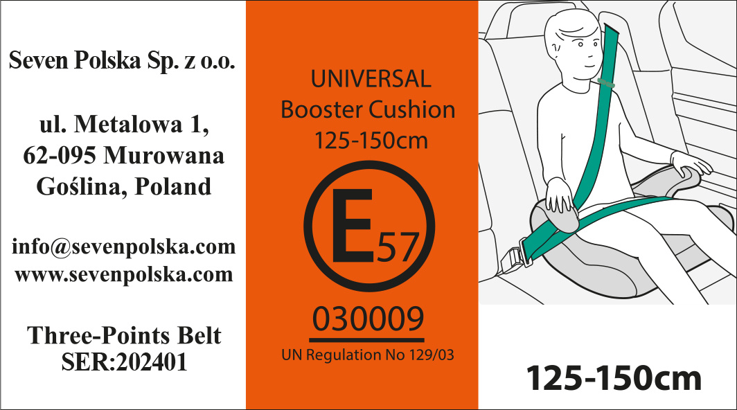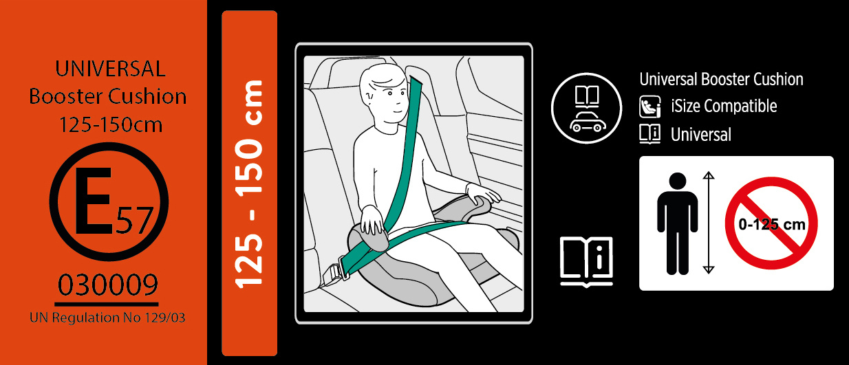 Sedadlo je určeno pro děti s výškou: 125 cm - 150 cm.
