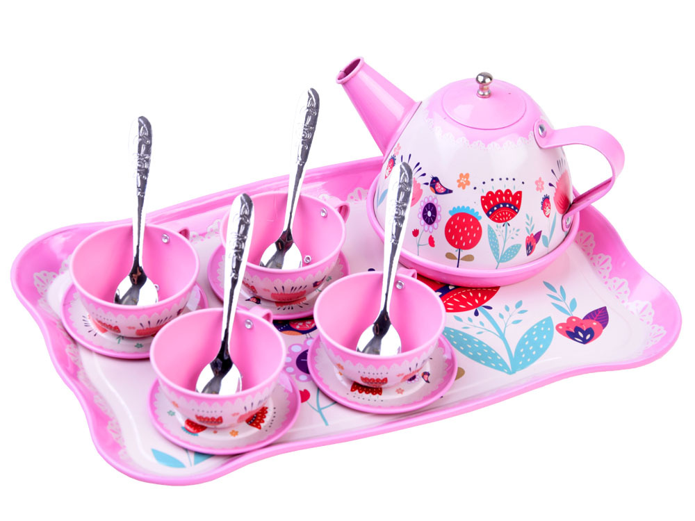 Nádobí je vyrobeno z kovu s důrazem na detail. Pozornost upoutají krásné pastelové barvy a půvabná květinová grafika.
