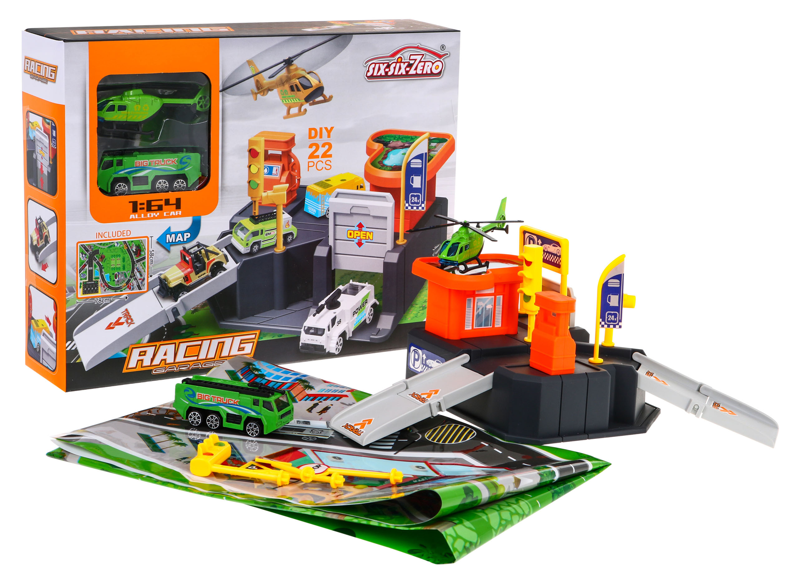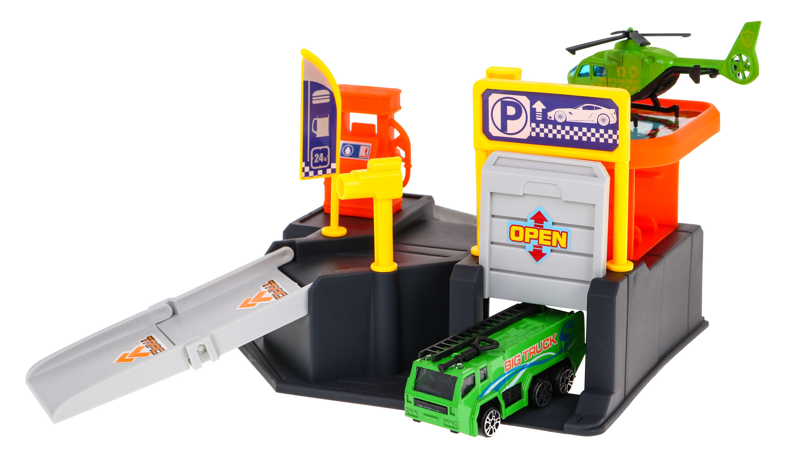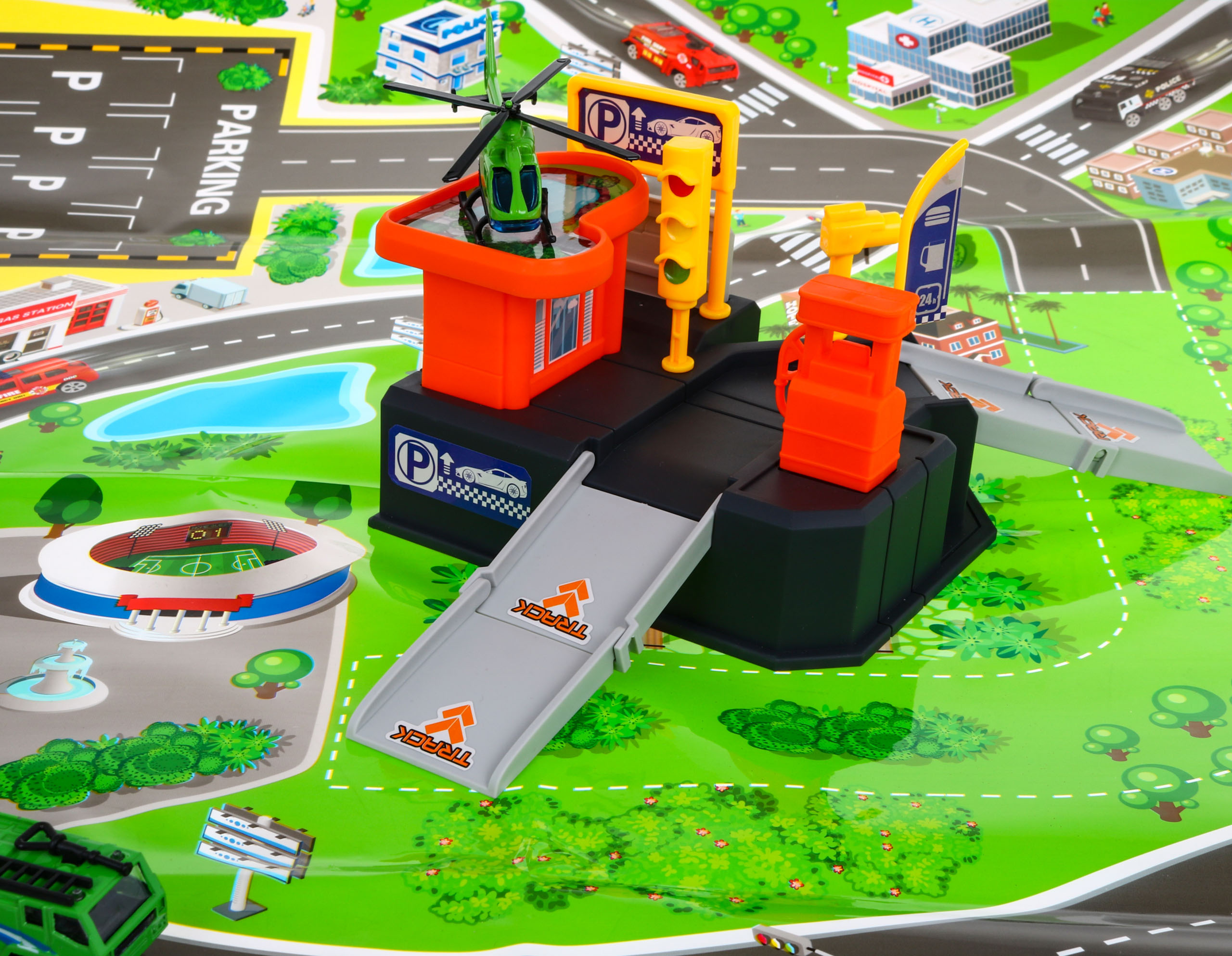 Sada se skládá z 22 prvků. Součástí parkoviště je podložka se silnicemi, po kterých mohou děti jezdit autíčky. Nespornou výhodou tohoto parkoviště je jeho velikost, nezabírá v místnosti mnoho místa. Hračka je určena pro děti od tří let.