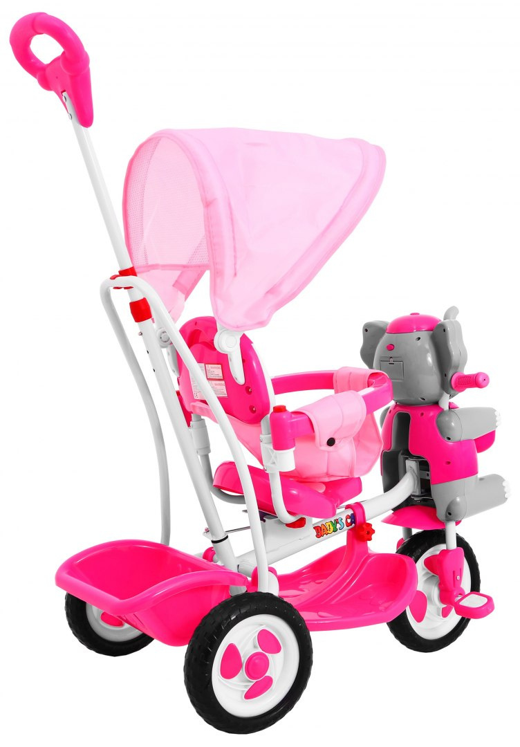 Tříkolka, slon s houpacím kolečkem růžová [B35-2 ROZ]