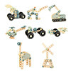 40dílná sada magnetických kostek. Krabice obsahuje 12 trojúhelníkových bloků o velikosti 5,5 cm, 18 čtvercových bloků o velikosti 6,5 cm, 6 čtvercových bloků o velikosti 4,4 cm, 2 šestiboké bloky o velikosti 6,5 cm a 2 dvojice kruhů.