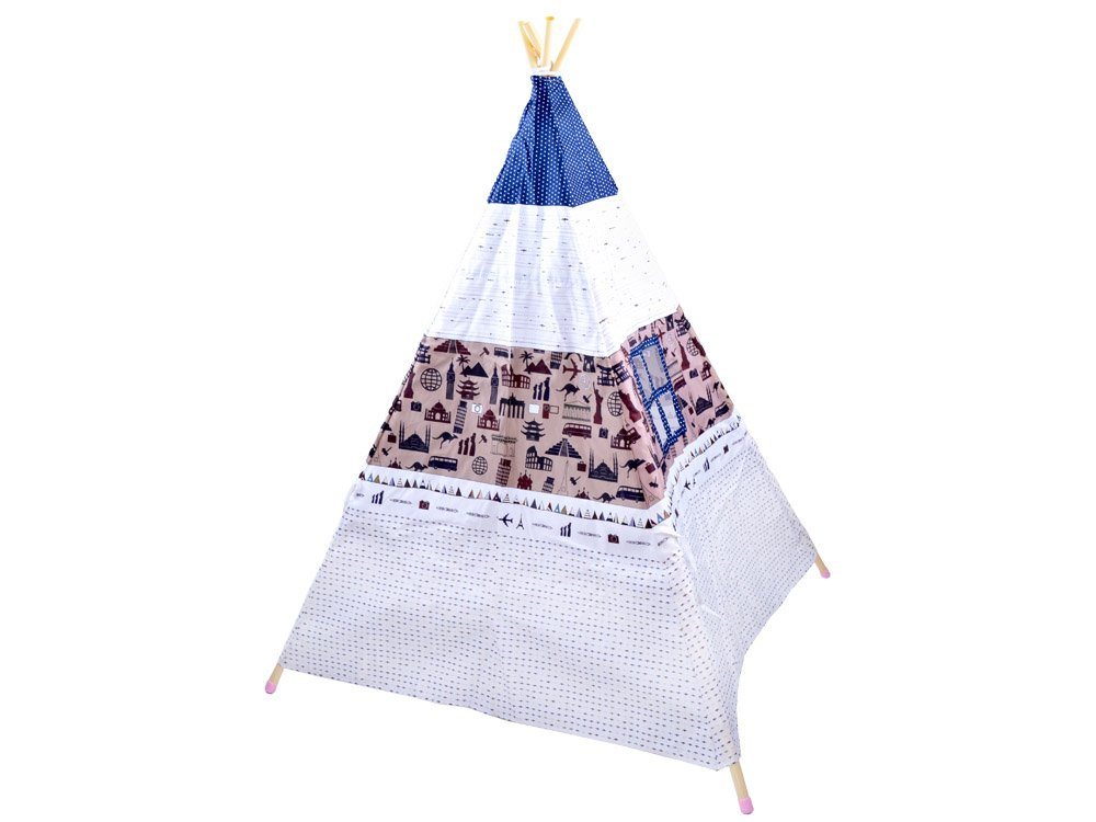 Stan ve stylu Teepee - se bude líbit snad každému dítěti. Děti mají rády tajemství a záhady a takový stan bude ideálním místem pro schovávání pokladů. Stan na hraní v pokoji nebo na zahradě je vyroben ze snadno omyvatelného materiálu a trubky jsou vyrobeny z plastu. Stan lze rozložit na jakémkoli rovném místě, je vhodný na hraní v pokoji s medvídky, panenkami, autíčky a skvěle se bude vyjímat i na zahradě. Stan je opatřen stahovacími páskami, které spojují jeho strany, takže je umožněn volný vstup a výstup. Velmi potřebné je také okénko, kterým se můžete podívat ven, zda se do stanu nevkrádá někdo nezvaný.