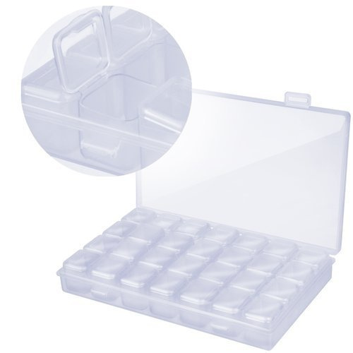 SPECIFIKACE - rozměry organizéru: 17,5 / 10,5 / 2,5 cm ; rozměry tašky: 17,5 / 24 cm ; rozměry pera; 13 / 2,5 cm ; rozměry boje: 11,3 / 5 cm ; rozměry odpadkového koše: 11/8 cm ; nastavená váha: 0,280 kg ; v sadě: 4 "pera", diamantový organizér, lisovací váleček, pinzeta, lepidlo, taška na nářadí, 3 kyvety, samolepky k označení diamantů na organizéru, snadné udržování pořádku a oddělení.